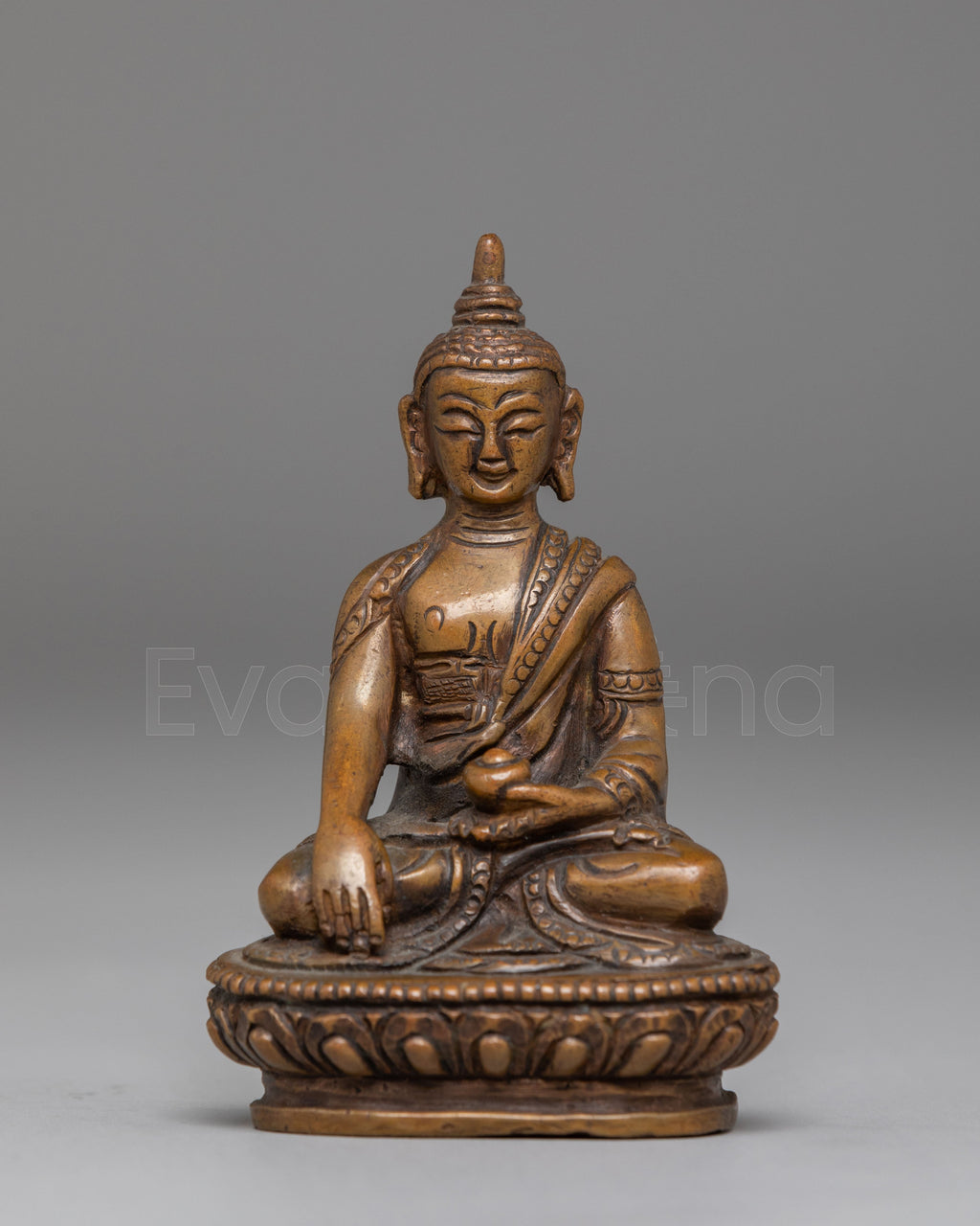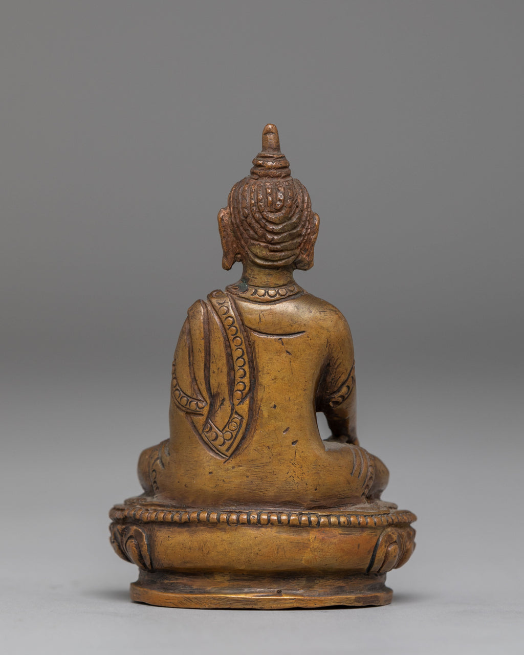 This Historical Buddha Statue of Shakyamuni Buddha is an intricately crafted representation of the Buddha, made from oxidized copper and designed to evoke a sense of serenity and enlightenment. Standing at 8.5cm tall and 6cm wide, this statue weighs a modest 0.21kg, making it perfect for personal altars, meditation spaces, or small shrines.