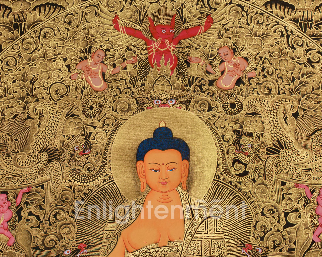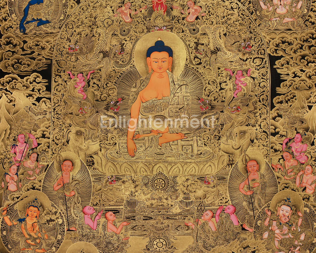 The Throne of Dharma, Historical Shakyamuni Buddha | Exclusive 24K Gold Thangka