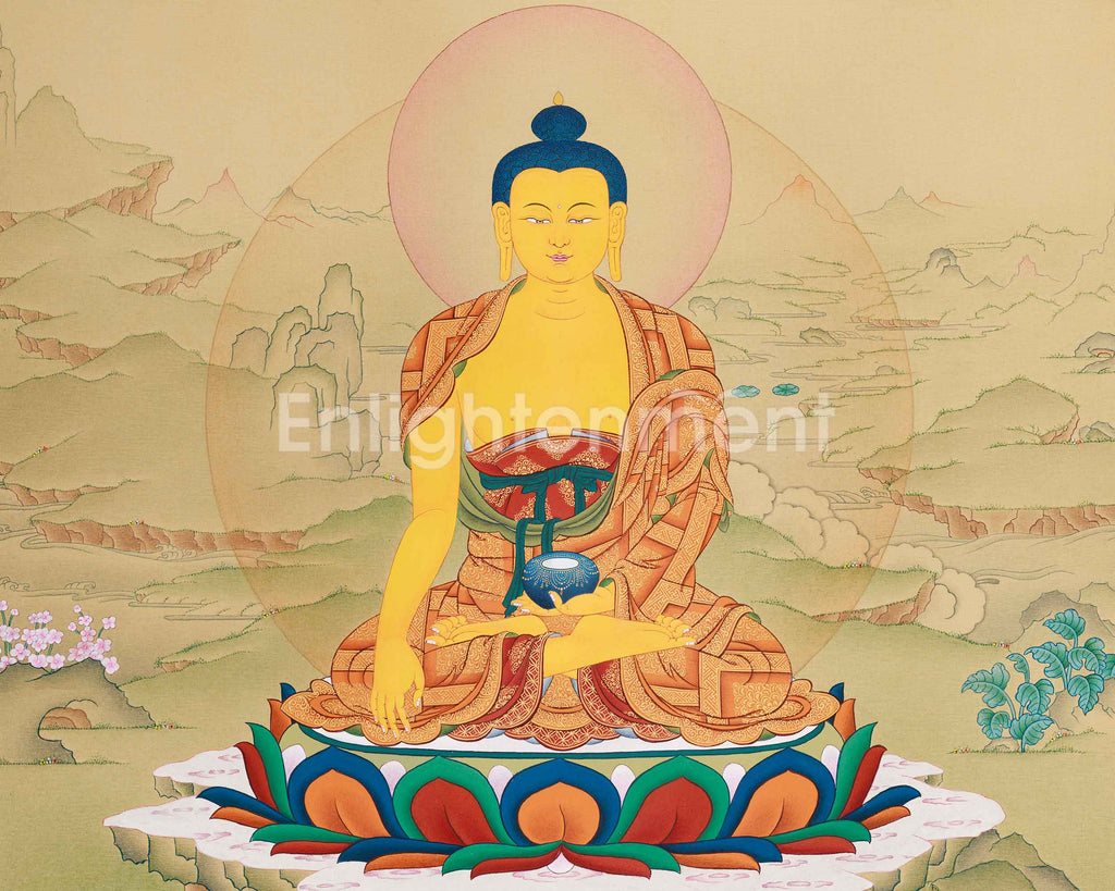 Beautifully Hand-Painted Historical Shakyamuni Buddha Painting | Tibetan Thangka Art from Enlightenment Studio