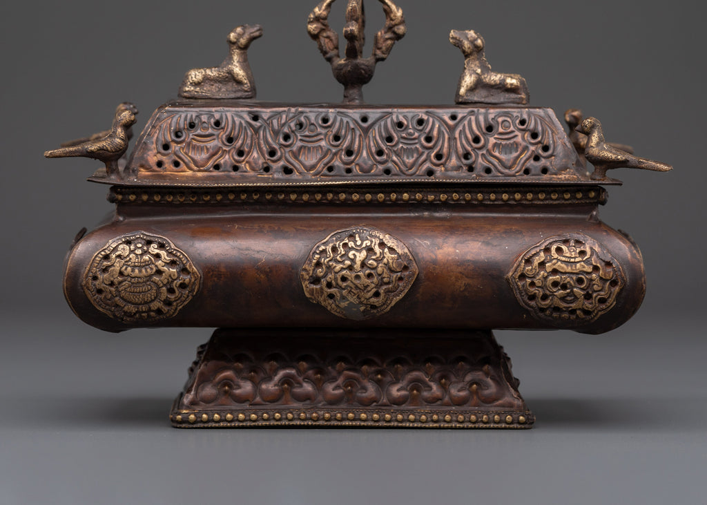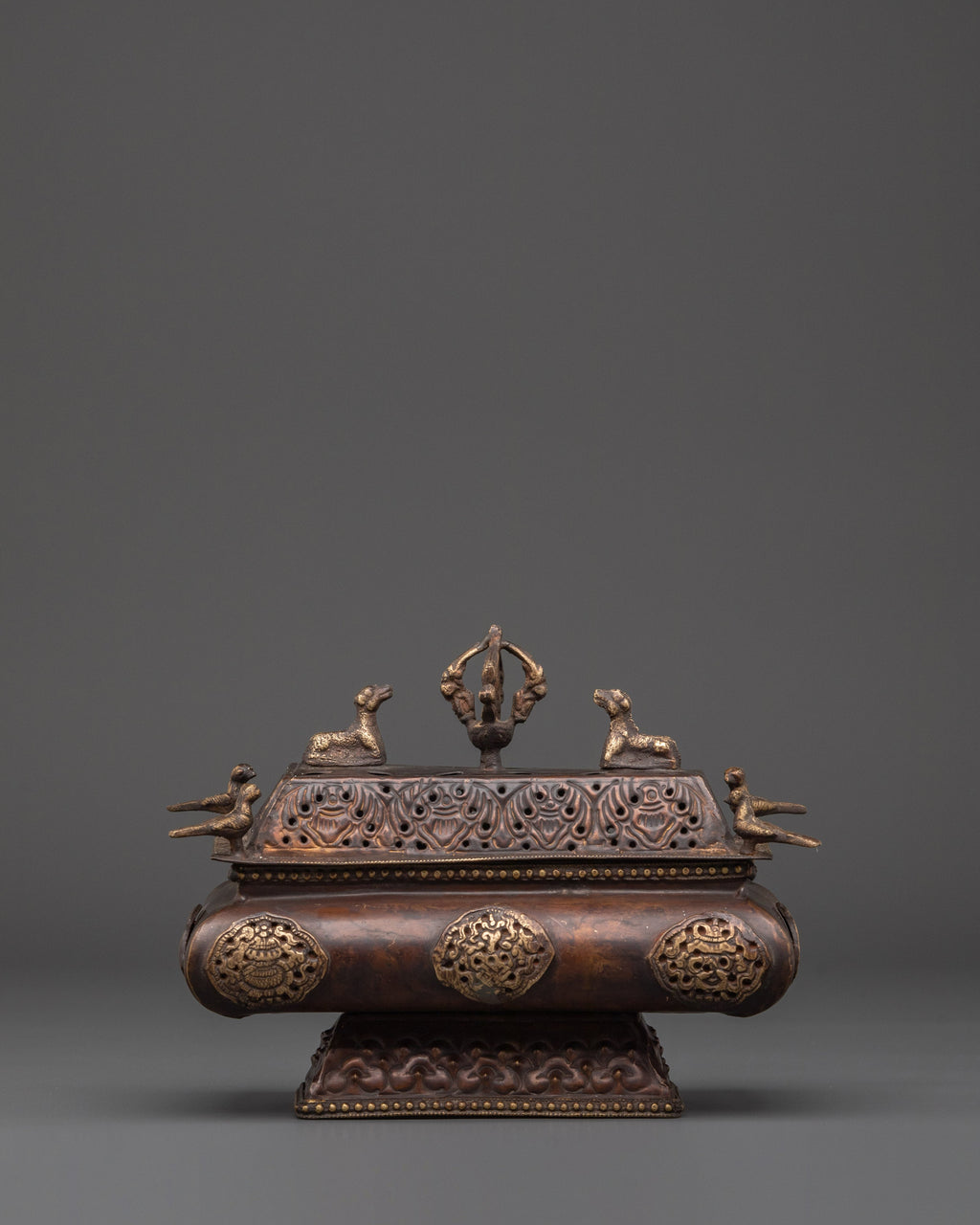 Every detail of this copper and brass incense burner reflects traditional craftsmanship and devotion. The elegant metallic tones and handcrafted structure symbolize balance and mindfulness, purifying your surroundings and fostering mental clarity. Whether used for daily meditation, prayer rituals, or simple relaxation, this incense burner embodies peace, focus, and inner harmony — a meaningful addition to your spiritual décor and mindful lifestyle.