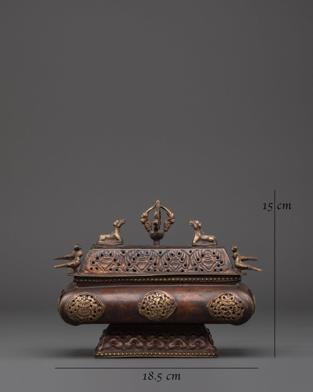Enhance your spiritual journey with this beautifully handcrafted Incense Burner for Spirituality, made from a copper body and brass for both beauty and durability. Designed to elevate your meditation, yoga, and relaxation practices, this incense holder creates a calm, serene atmosphere in any space. With its 15cm height and 18.5cm width, it’s compact yet impactful — perfect for both personal altars and larger meditation areas. Each incense stick burns evenly, releasing soothing aromas that deepen focus and tranquility during your spiritual routines.