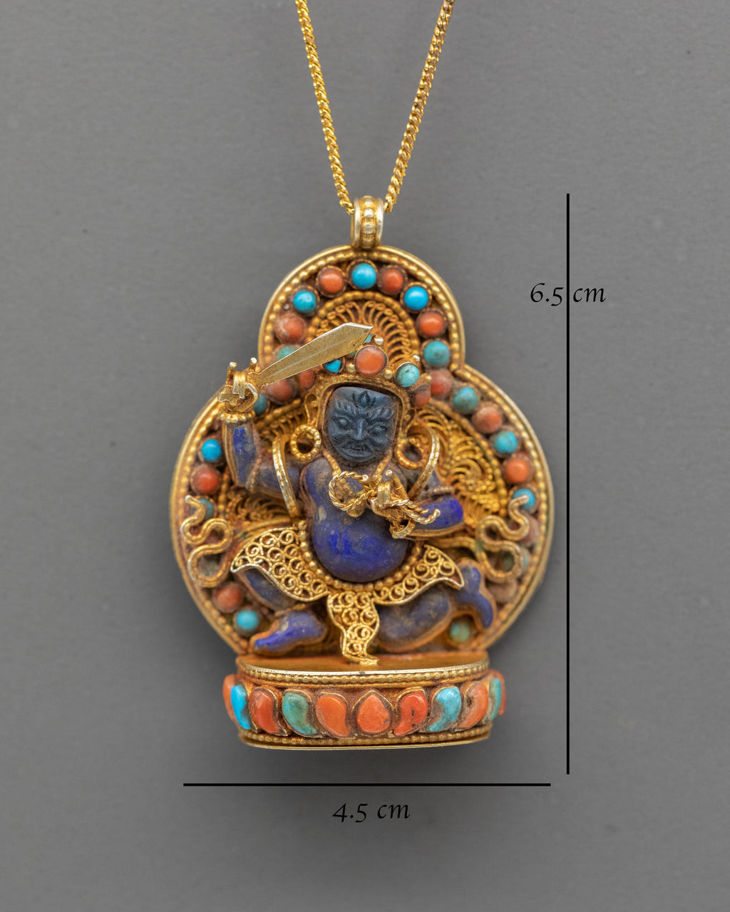 Handcrafted Khadgapani Protection Pendant | Gold Plated Silver with Lapis Lazuli