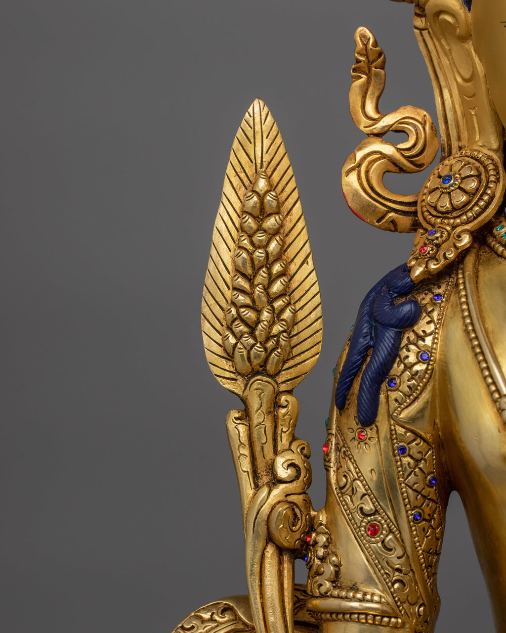 This Kshitigarbha Protector of Souls Statue embodies boundless compassion and unwavering spiritual protection. The statue measures 20.5" in height and 12.2" at the base and weighs 8.56 kg. It is meticulously handcrafted from fine copper, gilded with a triple layer of 24K gold, and adorned with acrylic paintings and intricate, 3D-like engravings.