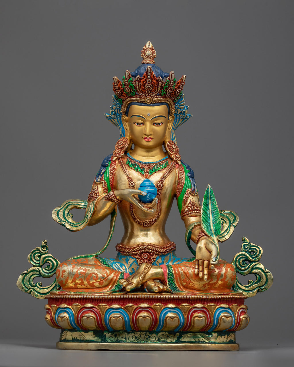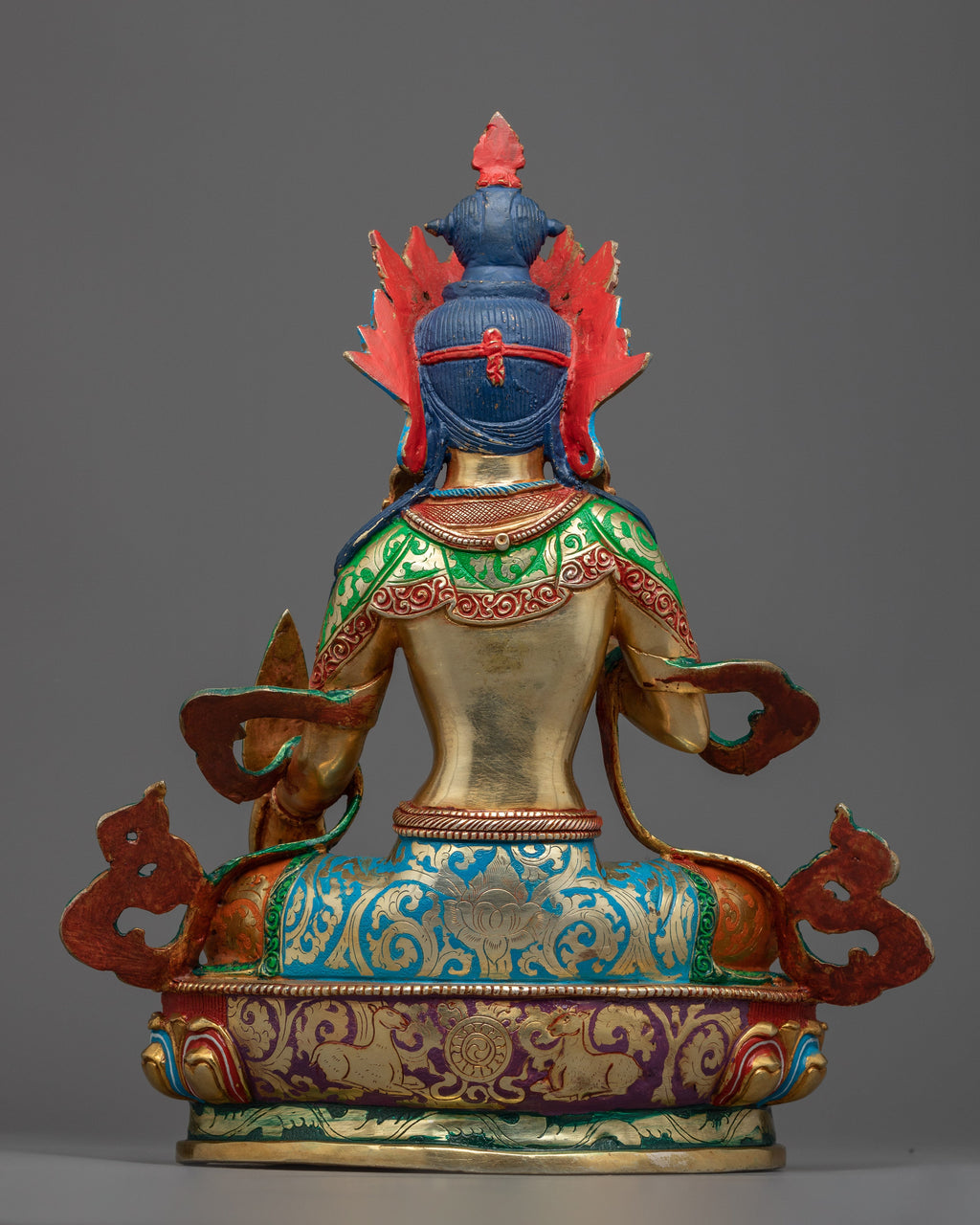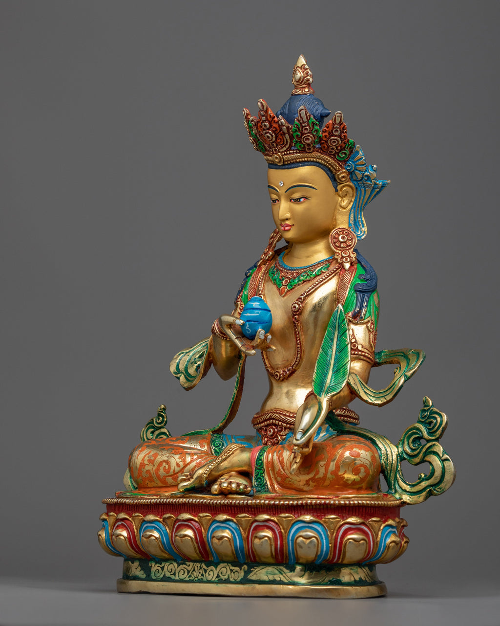 With our Ksitigarbha Bodhisattva Copper Statue, you may go deep into the universe of unshakable commitment and infinite compassion. Every contour and every detail represents hours of painstaking craftsmanship, perfectly portraying the soul of this beloved Bodhisattva. The statue, made of pure copper and embellished with 24k gold and beautiful acrylic paints, generates thoughts of optimism and loyalty.
