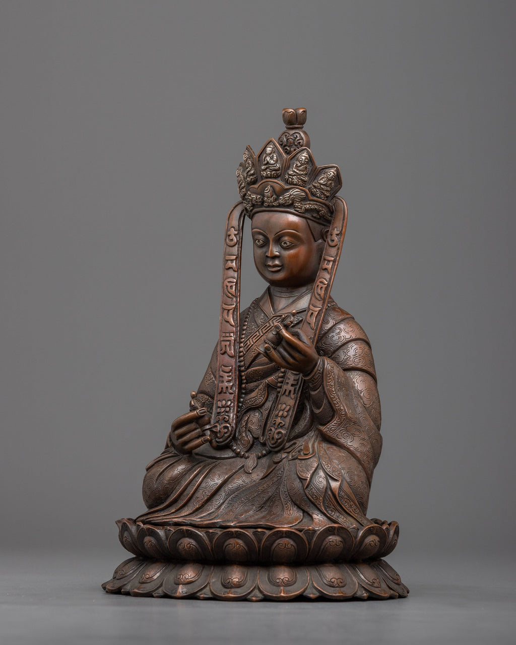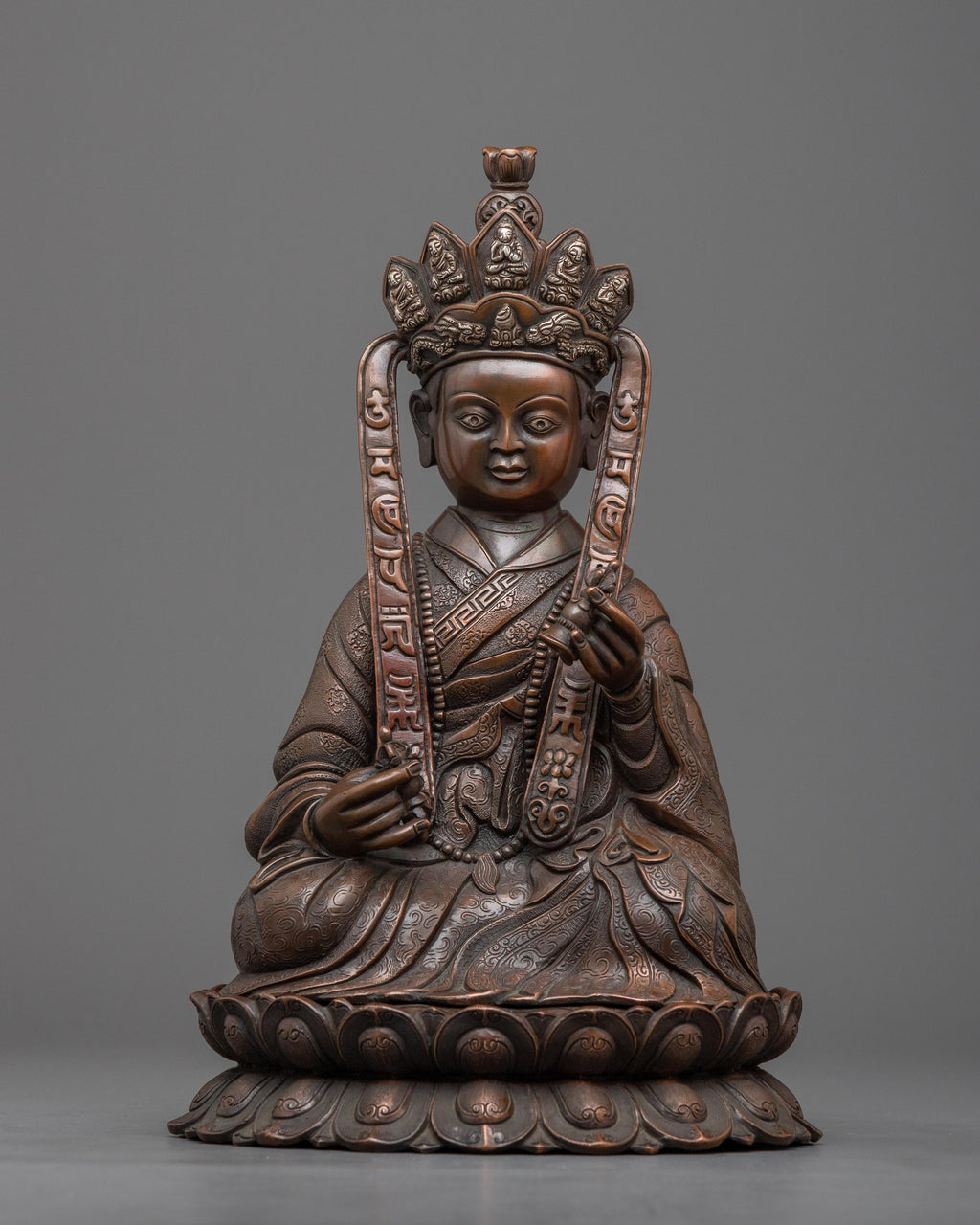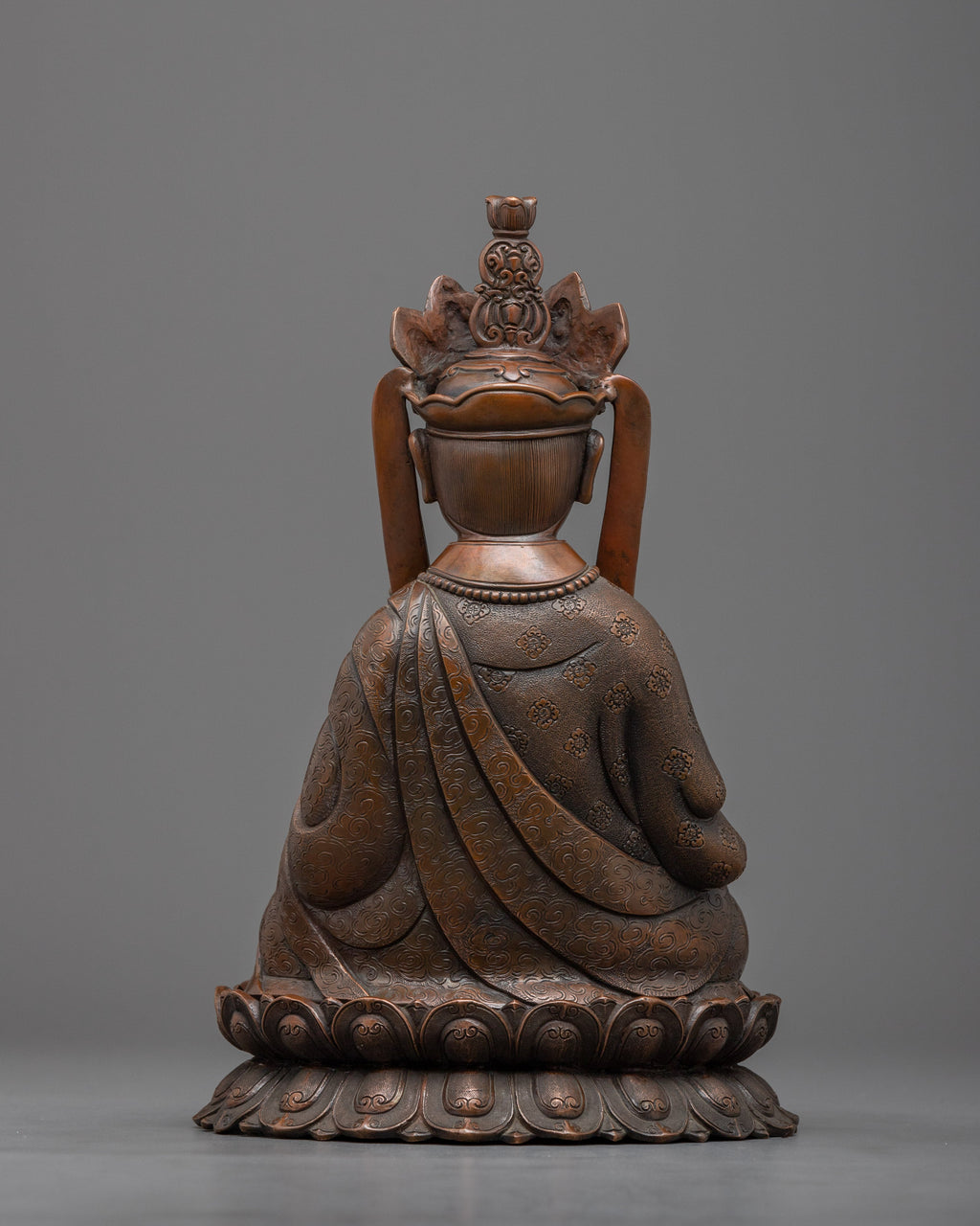 The oxidized copper body of this Ksitigarbha Bodhisattva Statue has a rustic charm, exemplifying the seamless synthesis of craftsmanship and faith. Every detail, every curve of this one-of-a-kind piece connects with Buddhist teachings, fostering awareness and inner calm in all who gaze upon it.