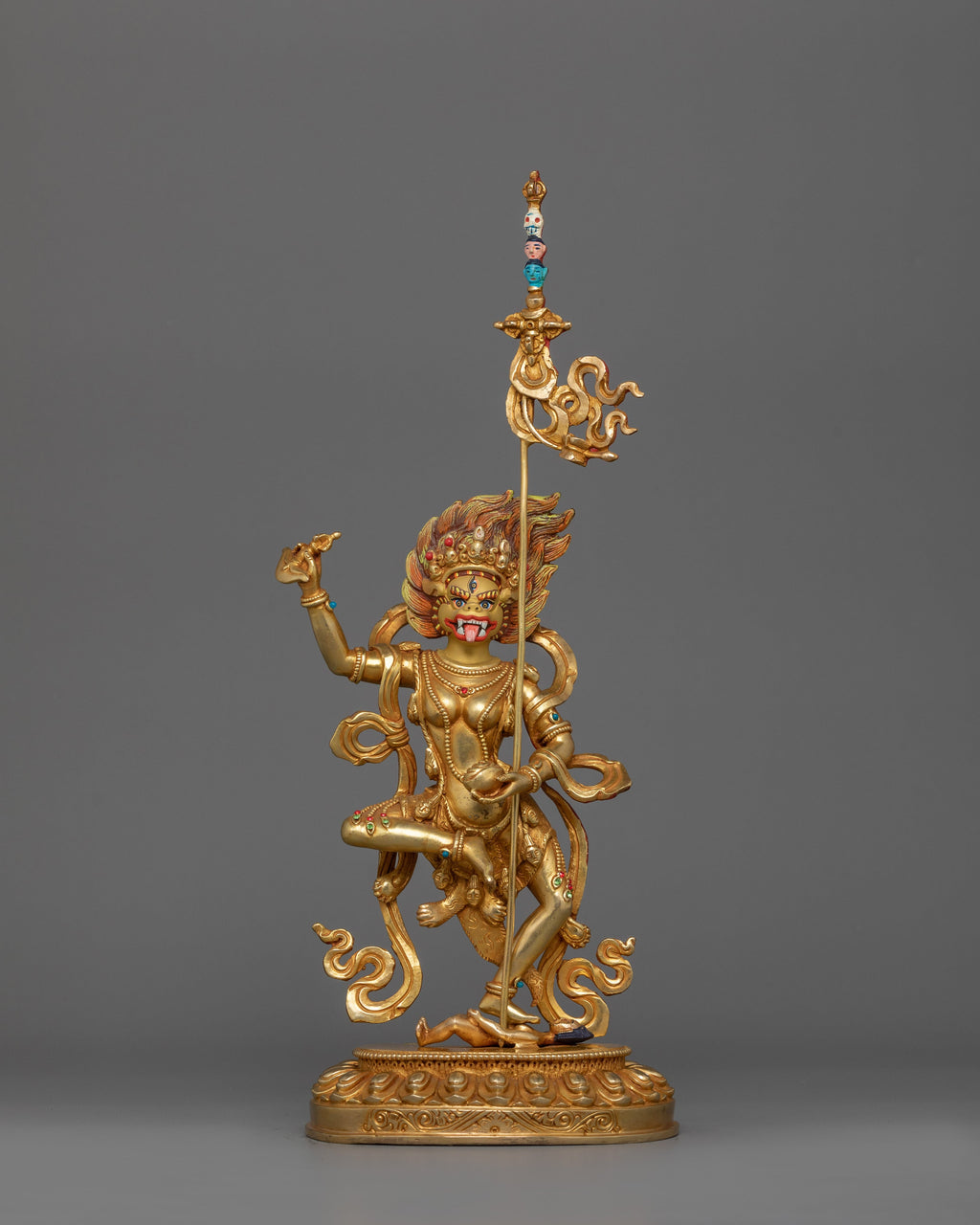 Simhamukha Dakini, a Tantric Buddhist figure, is known as the 'Lion-faced Dakini,' signifying the transformational power of fury into knowledge and clarity. By including this statue in your spiritual practice or home decor, you attract these traits into your life and serve as a continual reminder of the transformative power of divine feminine wisdom.