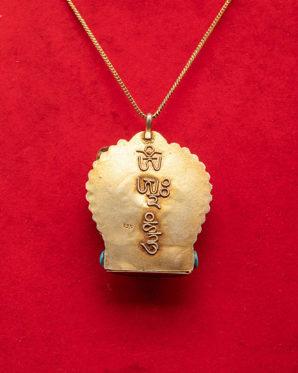 A Buddhist locket is a piece of jewelry designed to hold a small prayer, mantra, or image related to Buddhist practice. The locket may feature a design or image of a Buddhist deity, such as the Buddha, or a representation of a sacred symbol, like the lotus flower. It is typically worn as a talisman to remind the wearer of their spiritual path and to offer protection. Some Buddhist lockets are also used as a form of religious devotion and are frequently given as gifts to friends and family members to provide them with spiritual support and blessings.