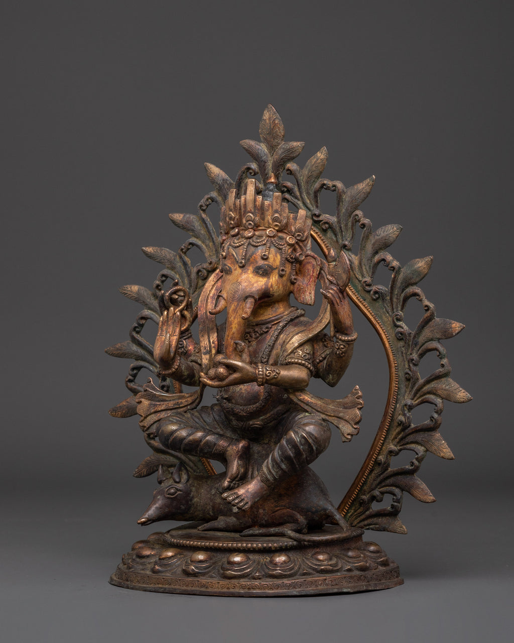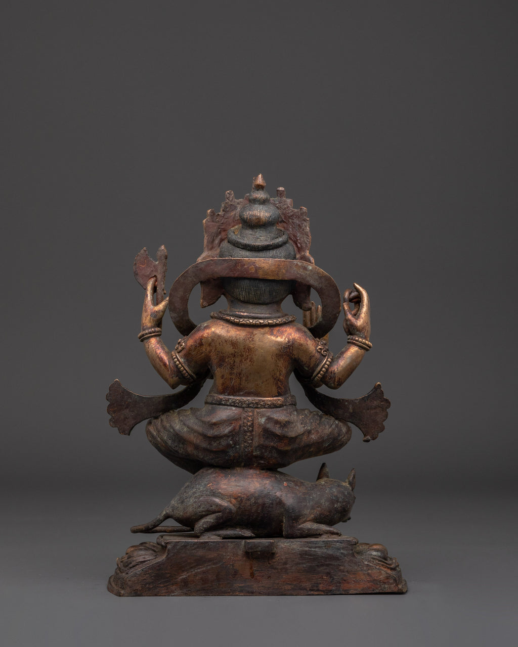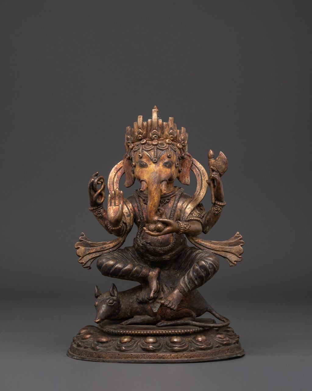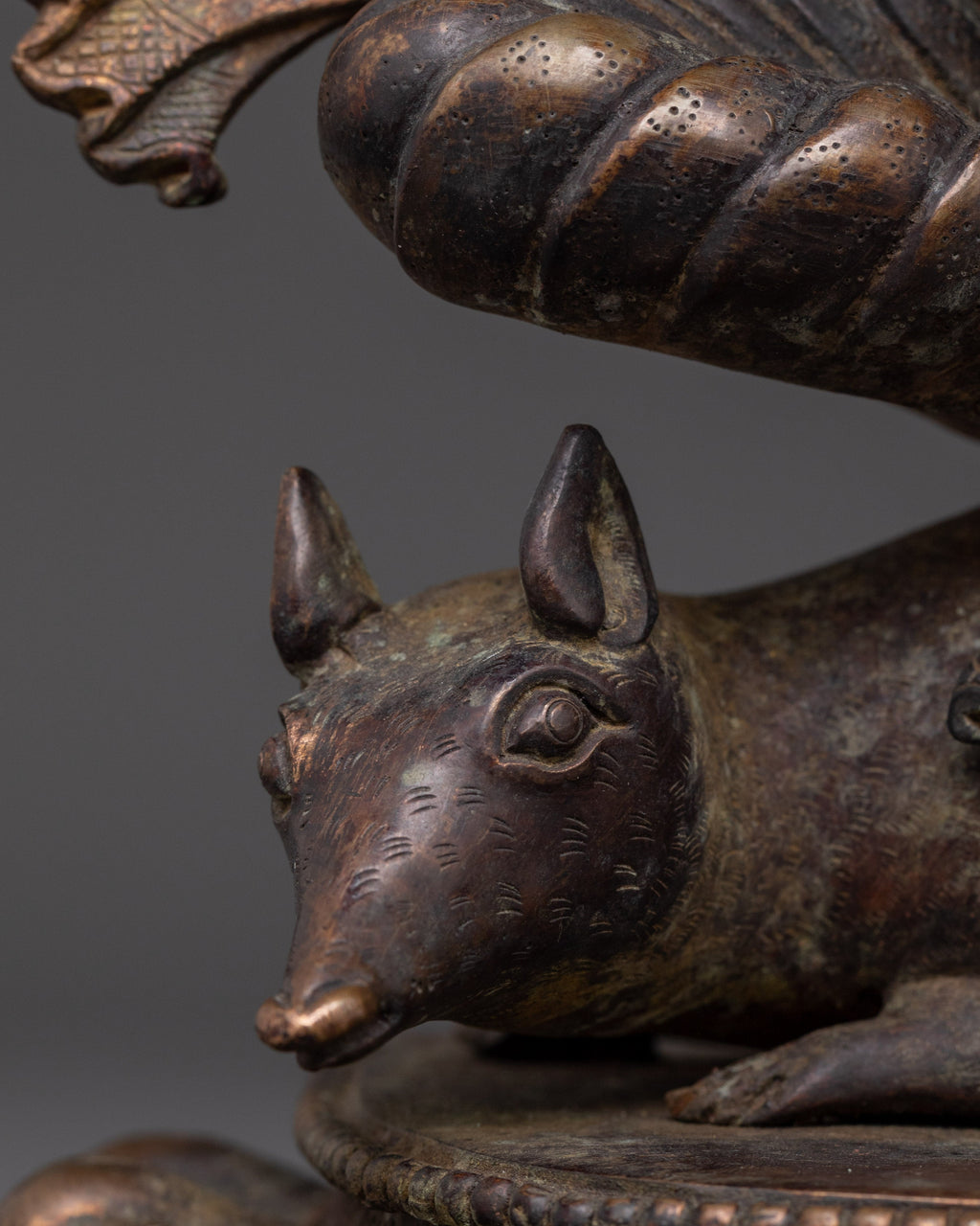 This handcrafted sculpture perfectly portrays the essence of Lord Ganesha, who is venerated as the remover of obstacles and bringer of good fortune. The intricate copper craftsmanship emphasizes his distinguishing qualities, such as his elephant head and elegant posture, providing a sense of calm and heavenly energy. Whether employed for rituals, meditation, or as a spiritual focal point, this statue adds a sense of positivity and goodness to your home or workplace.