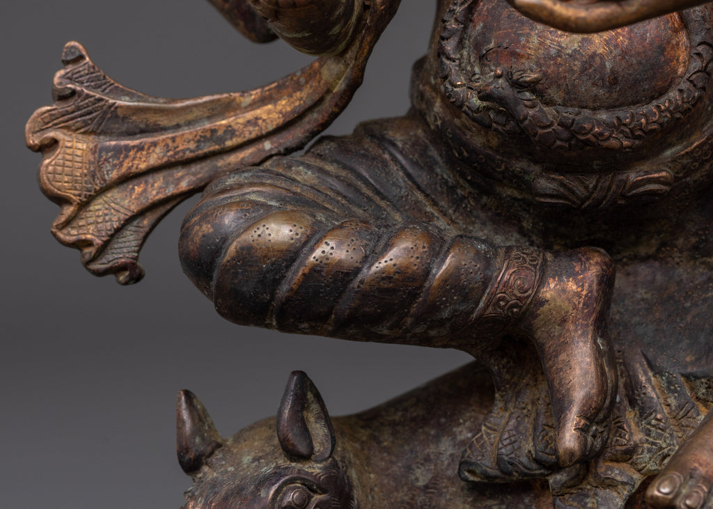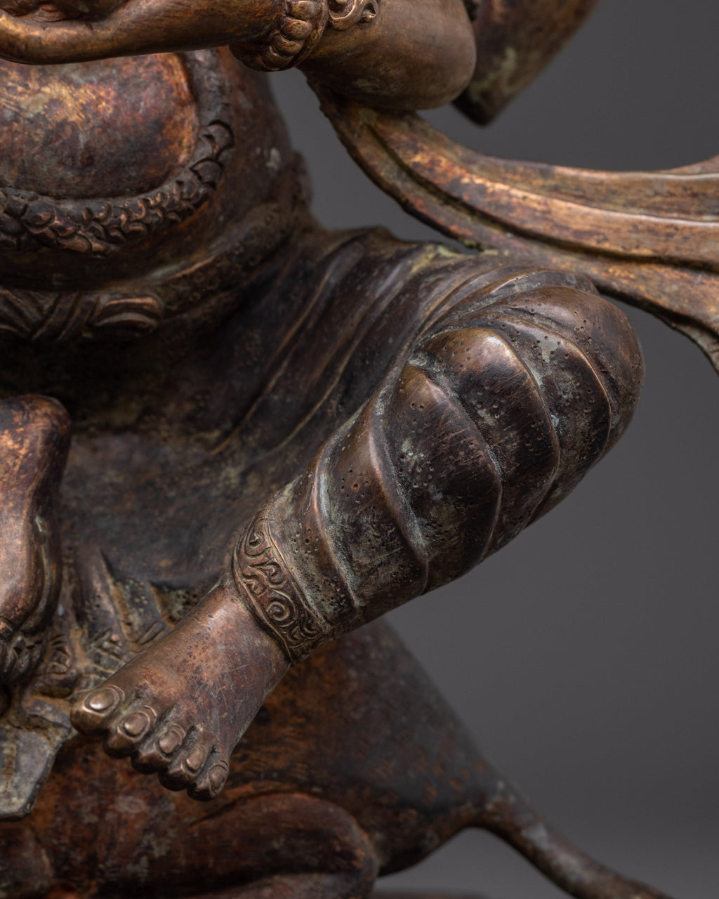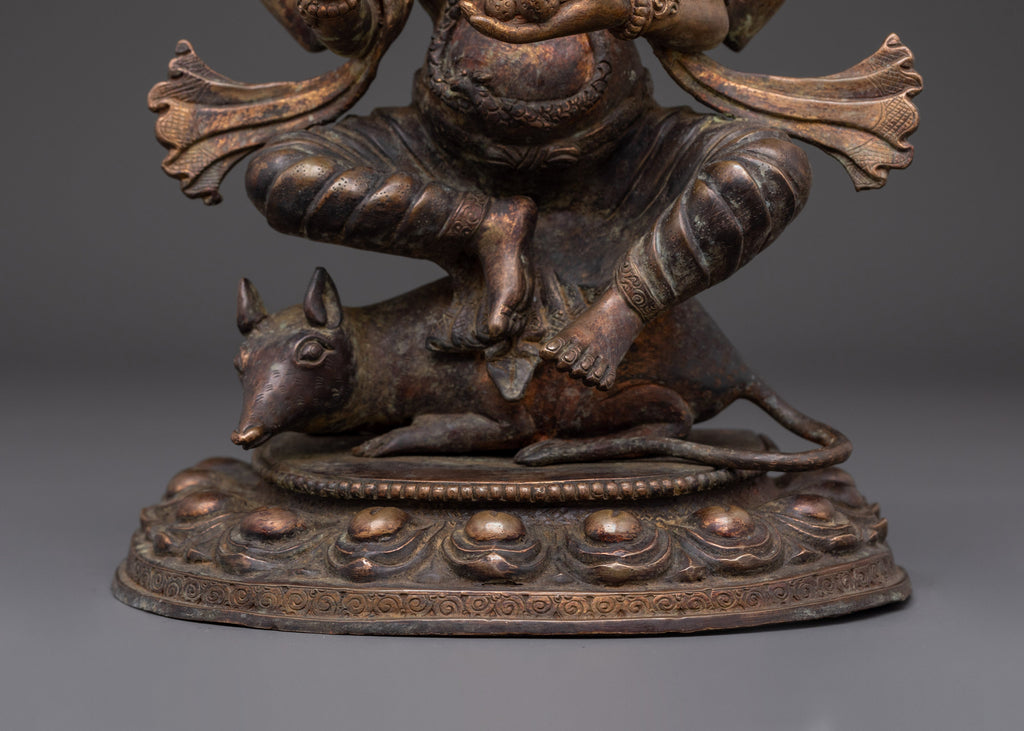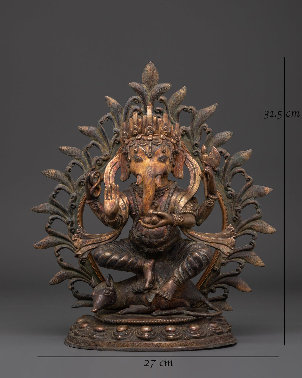 This handcrafted sculpture perfectly portrays the essence of Lord Ganesha, who is venerated as the remover of obstacles and bringer of good fortune. The intricate copper craftsmanship emphasizes his distinguishing qualities, such as his elephant head and elegant posture, providing a sense of calm and heavenly energy. Whether employed for rituals, meditation, or as a spiritual focal point, this statue adds a sense of positivity and goodness to your home or workplace.