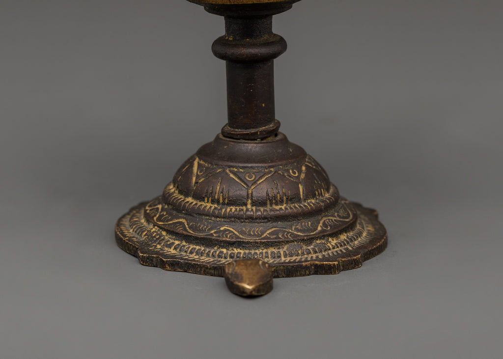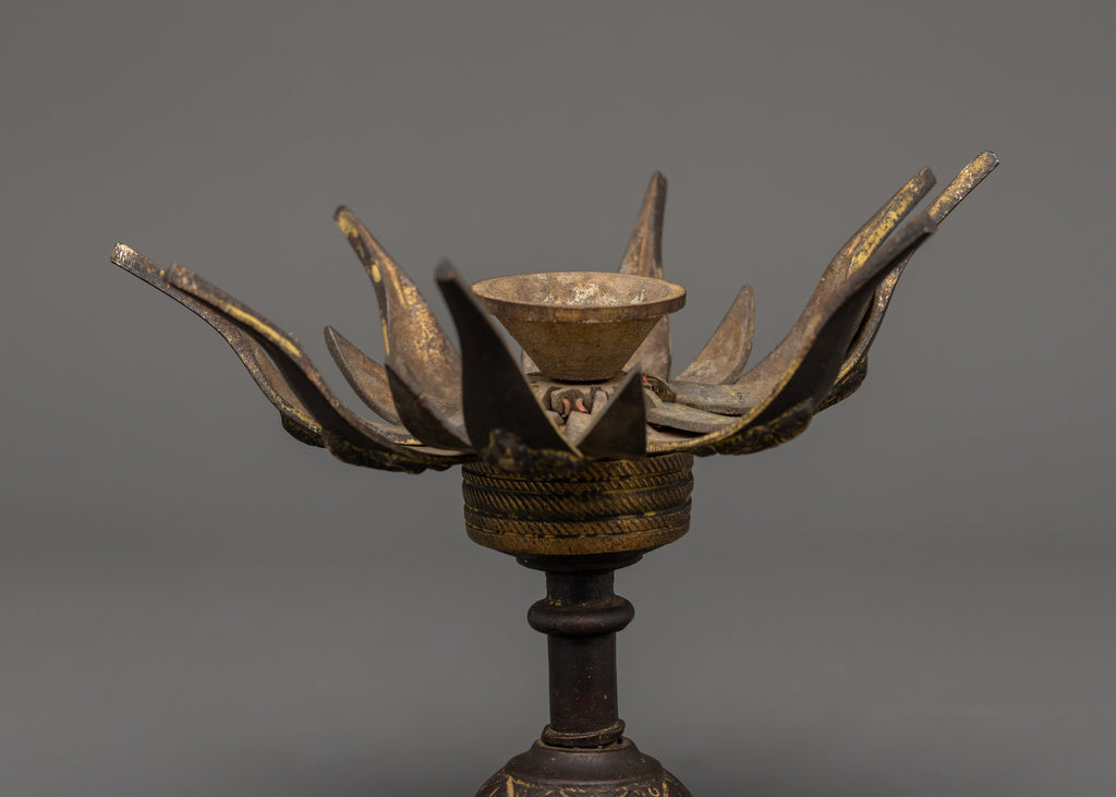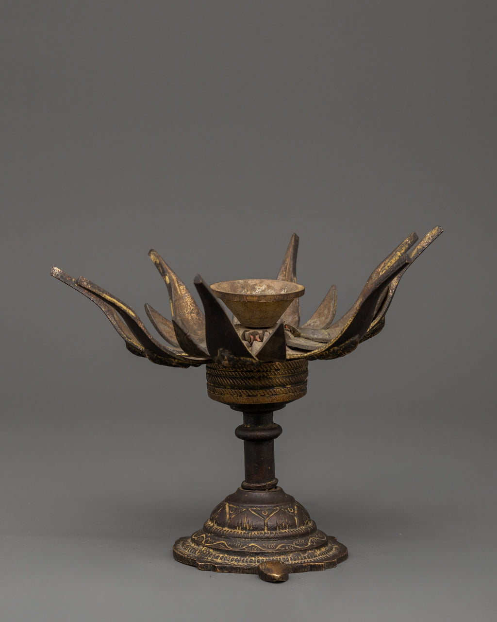 Sacred Tibetan Lotus Lamp for Altar and Ritual Use | Antique Brass Decor