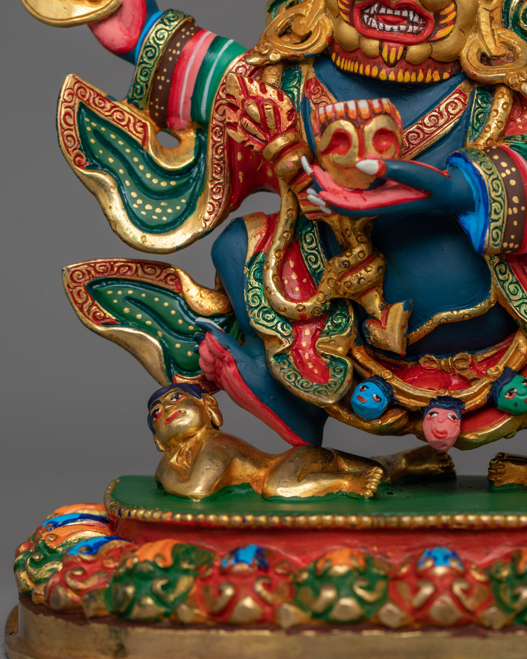 8.3” Mahakala Bernakchen Fierce Dharma Protector Sculpture | 24K Gold Gilded Copper Artwork