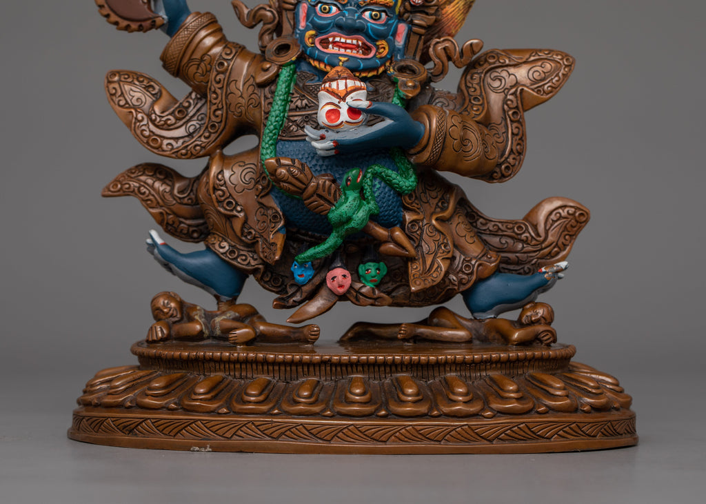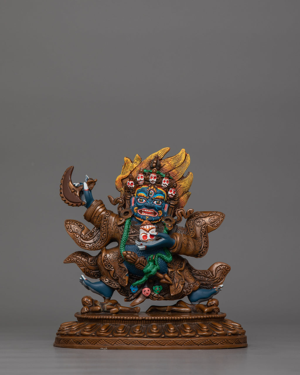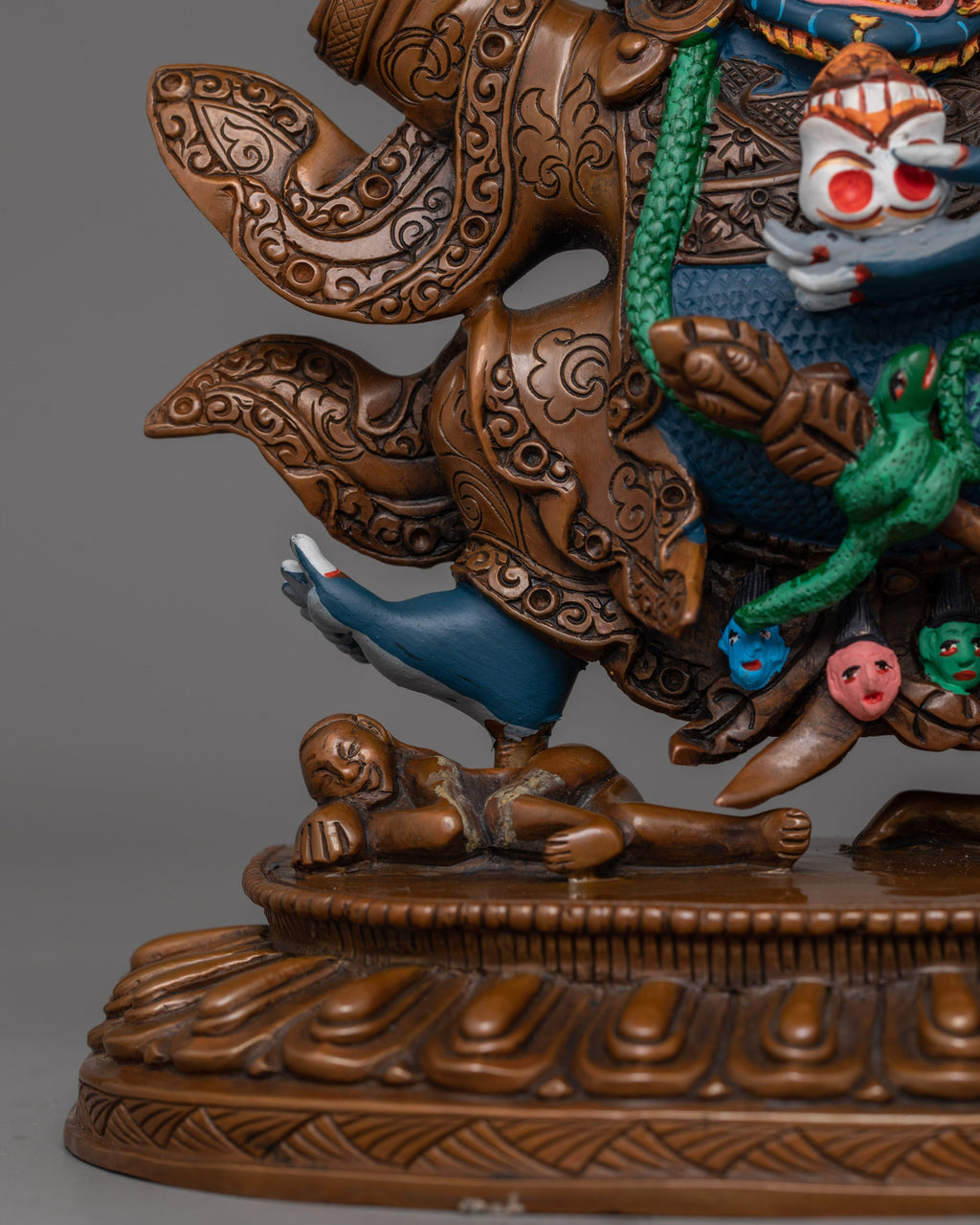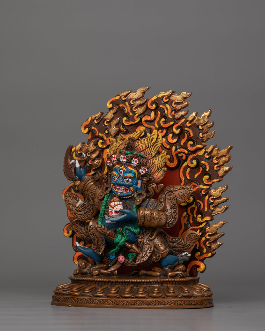 9.4” Mahakala Bernakchen Enlightened Protector Sculpture | Wrathful Mahakala with Flaming Halo
