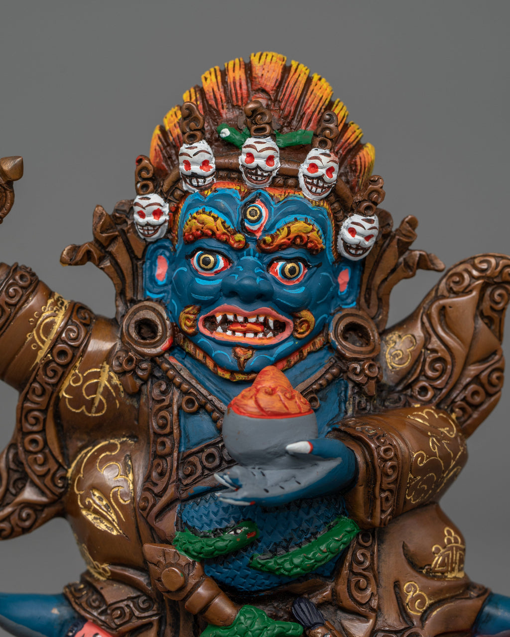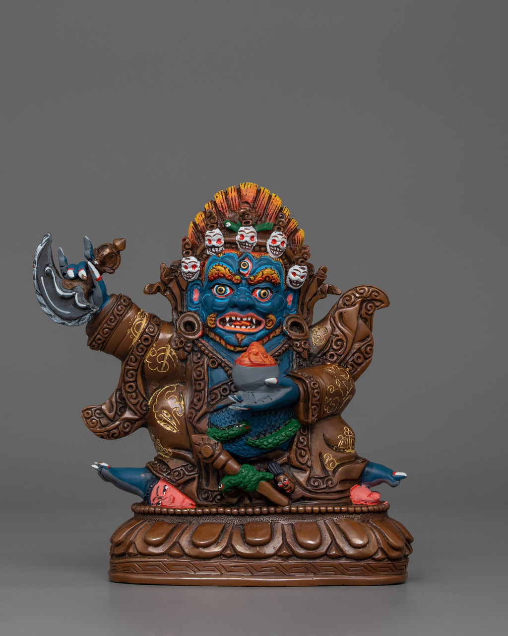 Oxidized Mahakala Bernakchen Tibetan Deity Sculpture | Handmade Buddhist Sculpture