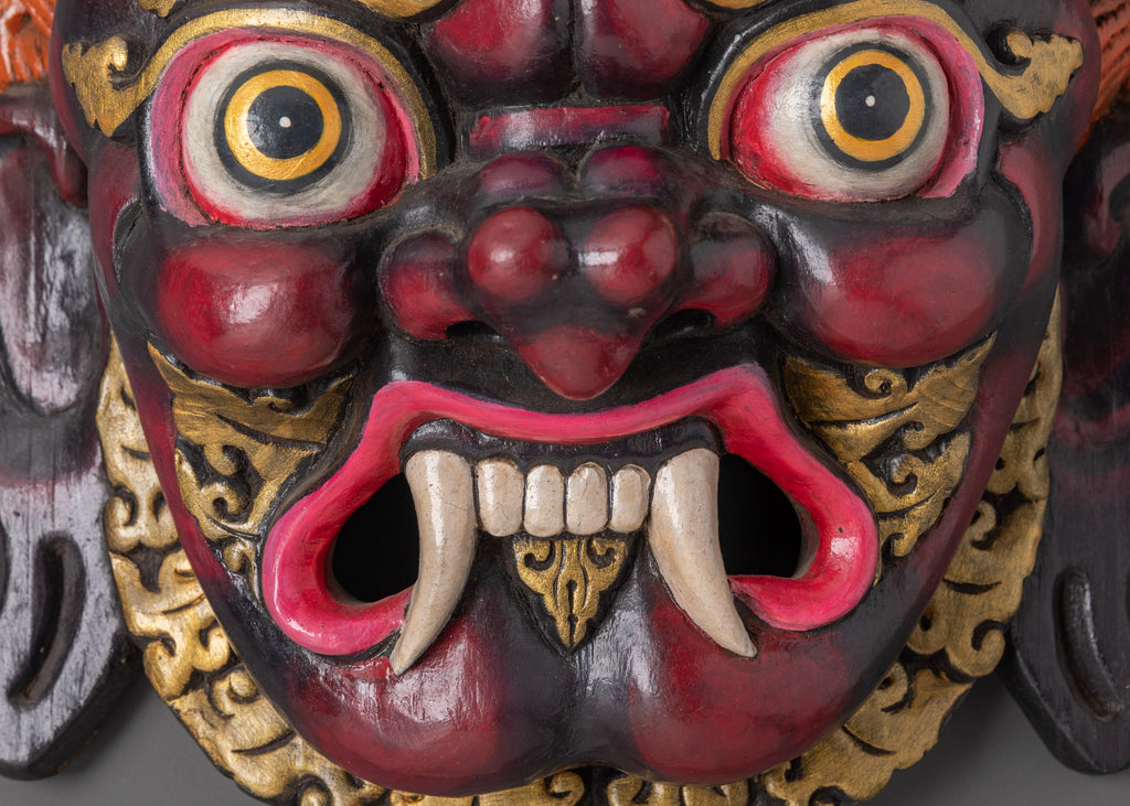 Hand-carved Mahakala Wall Hanging | Wooden Protector Deity Mask with Acrylic Colors