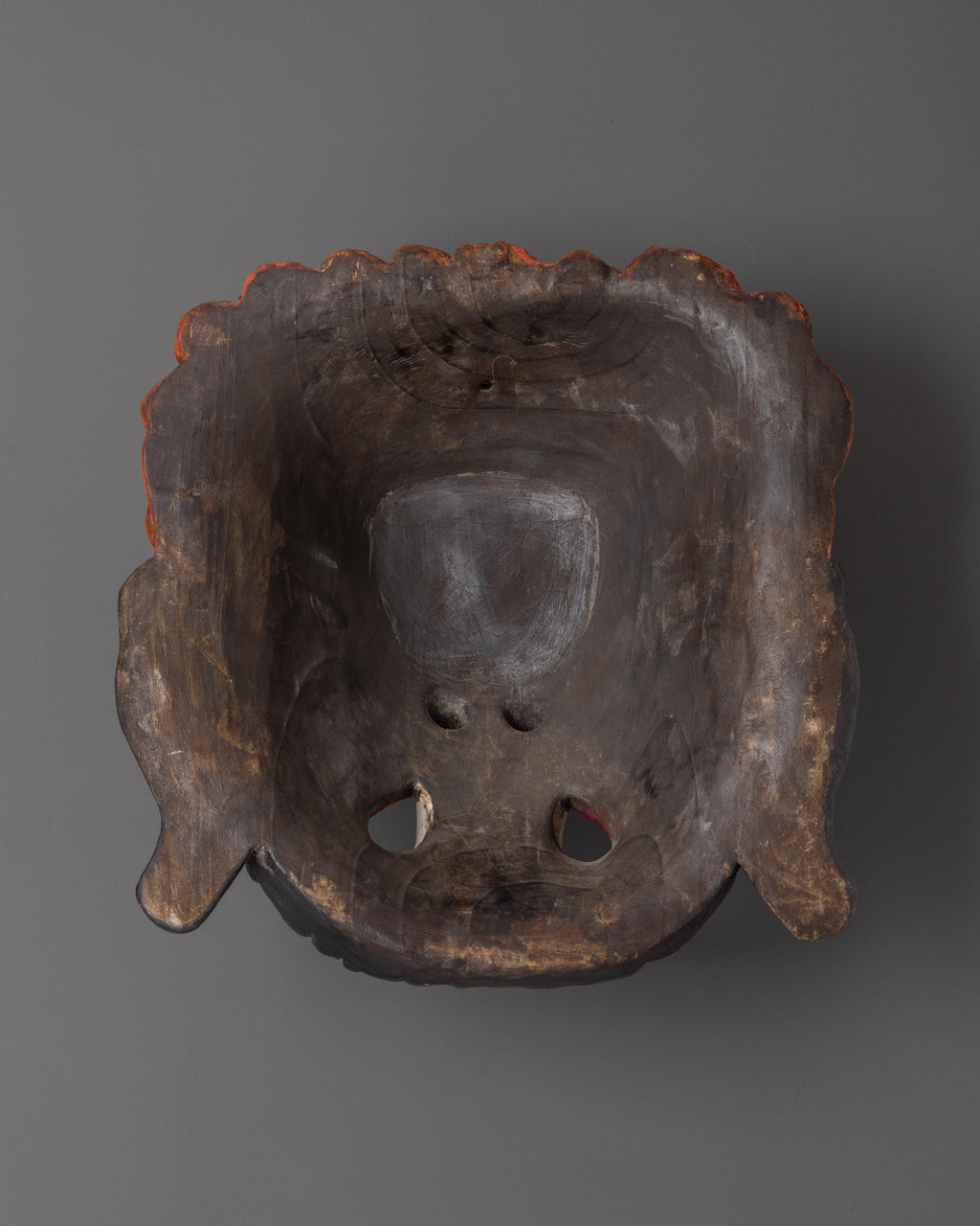 This Tibetan Buddhist Mahakala mask is more than just a decorative item; it is a spiritual talisman thought to remove evil forces, provide protection, and imbue practitioners with courage and insight. This wall hanging is perfect for meditation rooms, shrines, or as a dramatic centerpiece of cultural decor, connecting any space to Mahakala's powerful guardianship and blessings.