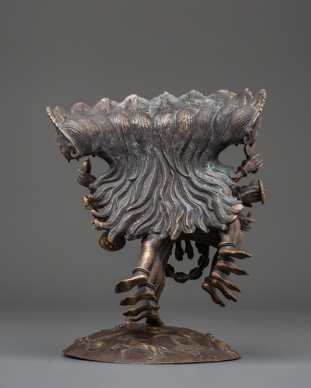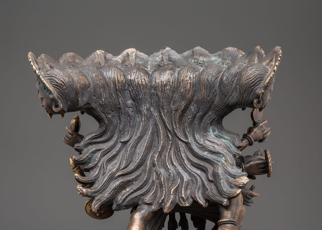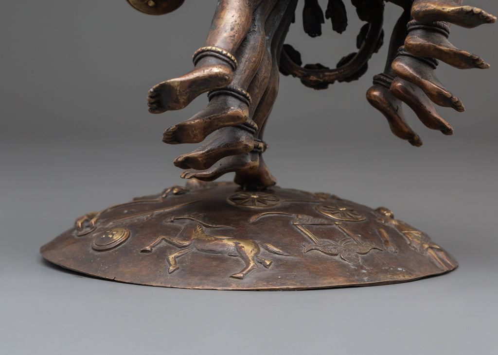 Handcrafted with meticulous care, the brass Mahakali sculpture depicts the goddess in a dynamic, powerful pose, symbolizing her role as the destroyer of negativity. The deep engravings and fine craftsmanship make this statue not only a powerful spiritual symbol but also an exquisite work of art. Mahakali is often depicted in Hindu tradition as a force that transforms darkness into light, and this statue embodies that essence with grace and intensity. Whether used for prayer, meditation, or as a decorative piece, it serves as a potent reminder of divine protection and spiritual power.