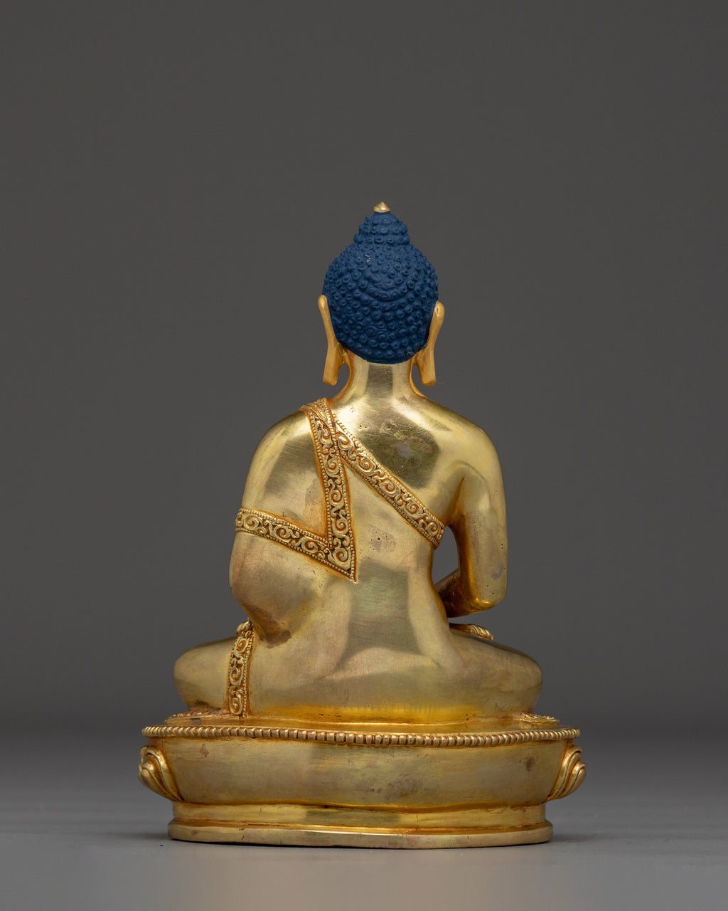 The Mahayana Amitabha Buddha Figurine statue stands 7.1” (18 cm) tall, with a base width of 5.3” (13.5 cm), and weighs 1.16 kg. Handcrafted from a copper body, it is adorned with 24K gold gilding and detailed gold and acrylic paintings. Amitabha, the Buddha of Infinite Light, symbolizes limitless compassion and the aspiration for rebirth in the Western Pure Land. Compact yet finely detailed, this statue is ideal for personal altars, meditation spaces, or as a meaningful spiritual gift.