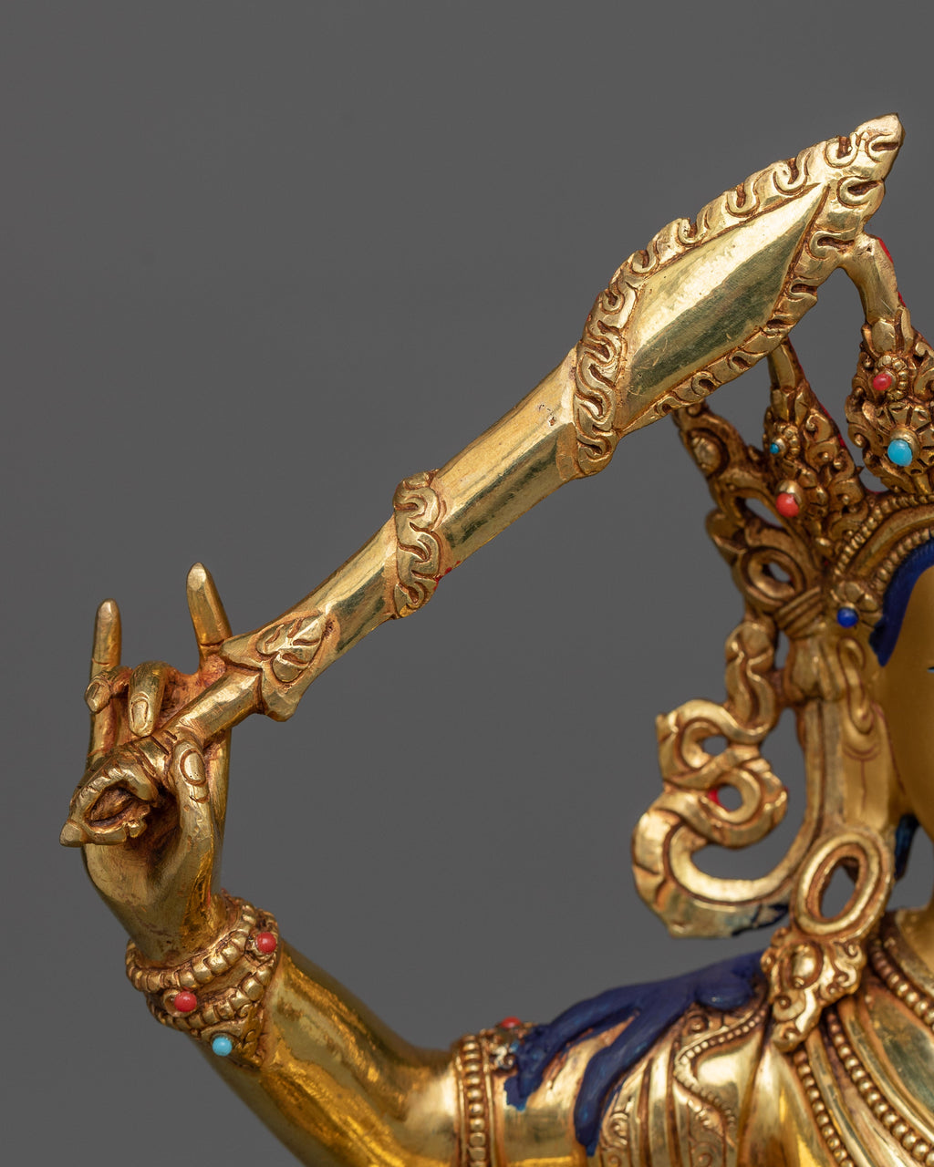 Manjushri is honored in Buddhist traditions as the Bodhisattva of perfect wisdom, frequently depicted brandishing a fiery sword that cuts through ignorance. His teachings open the way to enlightenment, enabling people to a profound awareness of the universe.