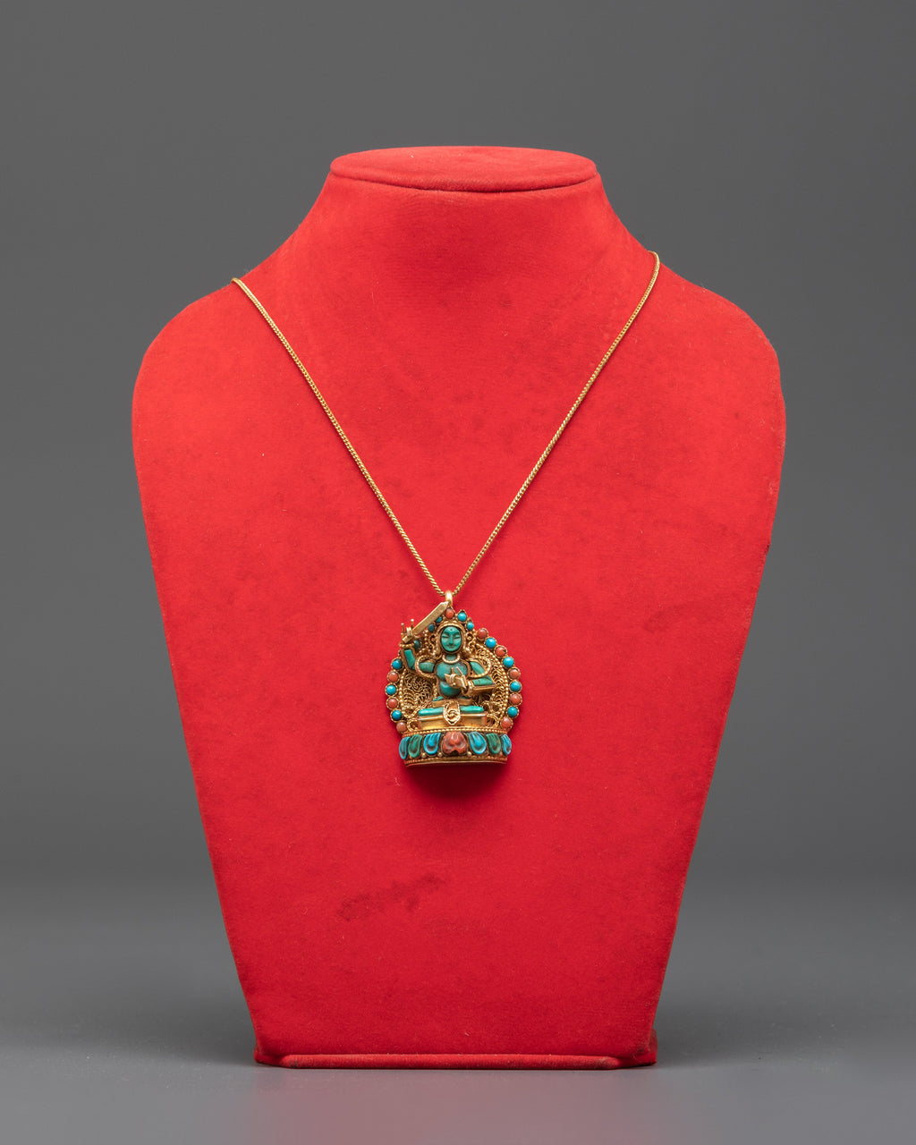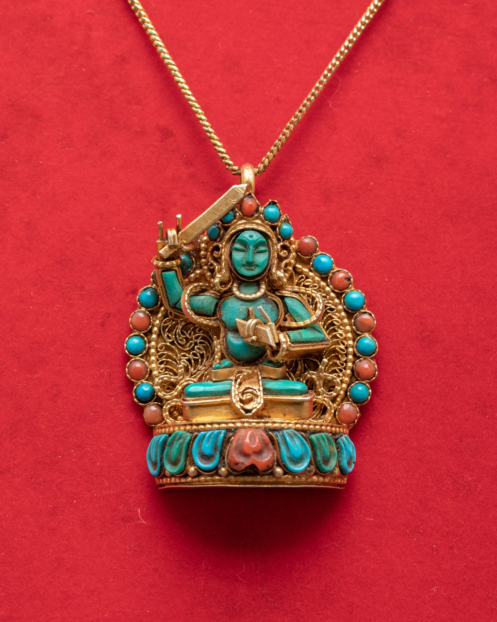 Manjushri Gold Plated Locket | Locket with Coral and Turquoise Stones