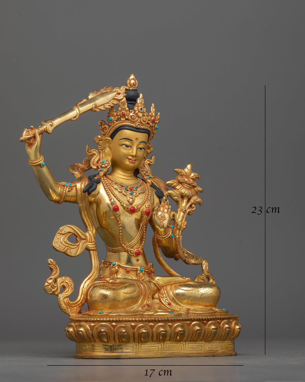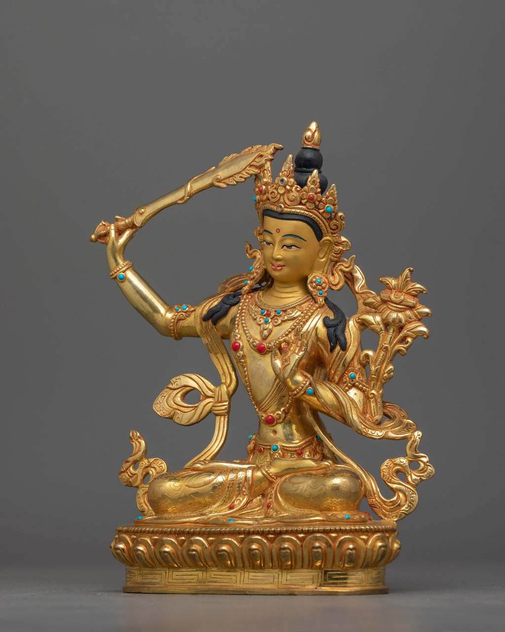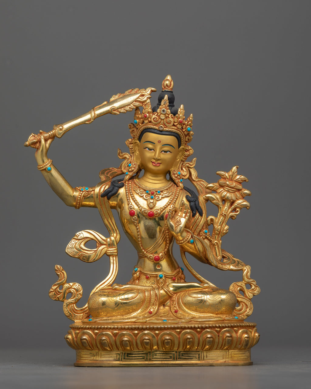 24K Gold Gilded Manjushri Statue Protector of Scholars | Wisdom Deity for Shrine