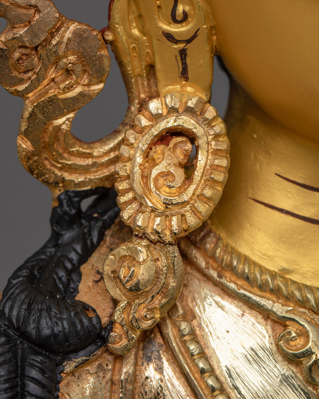 24k Gold Gilded Statue of Manjushri, the Supreme Wisdom Deity of Buddhism