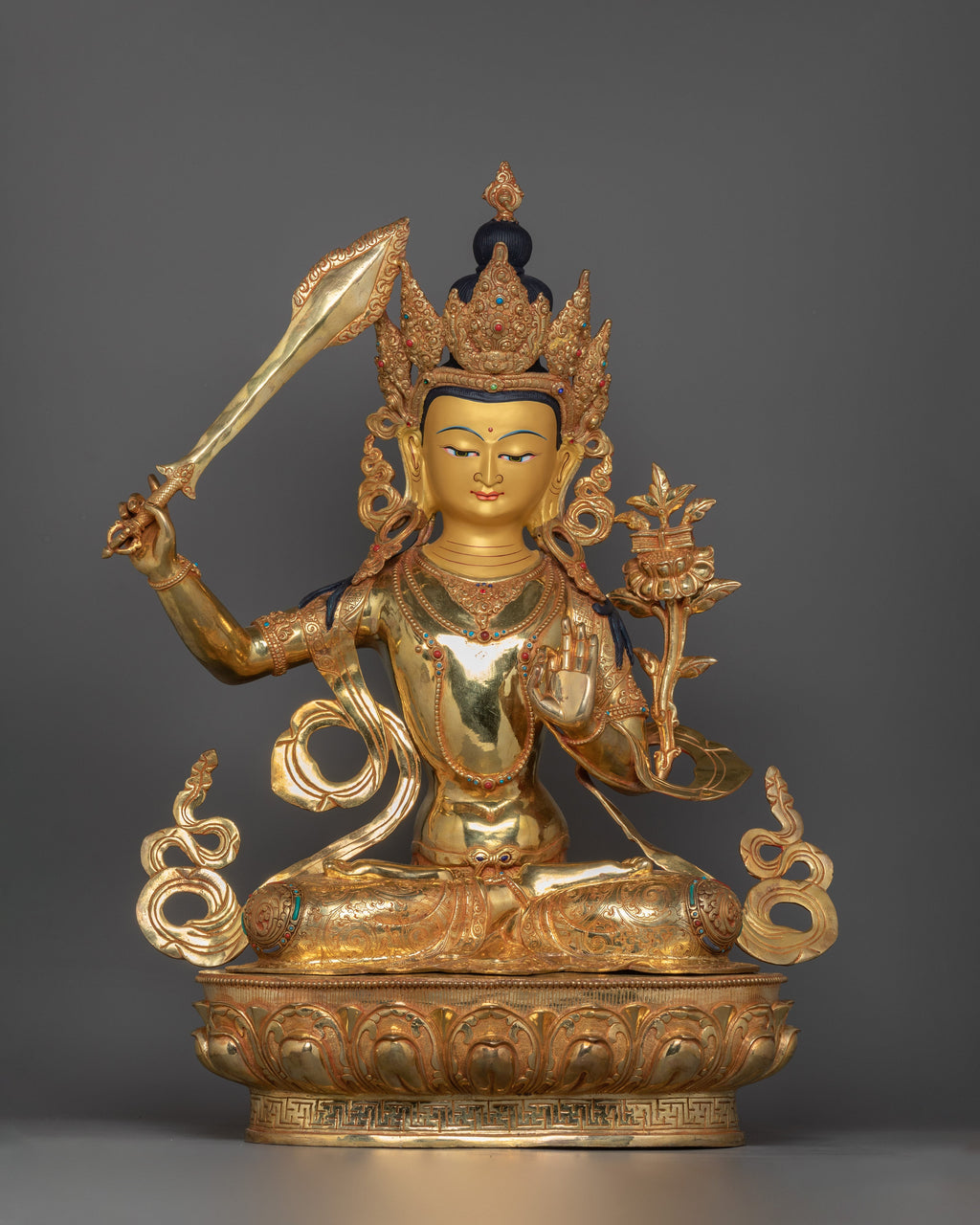 Himalayan Buddhist Manjushri the Bodhisattva of Great Wisdom Artwork | Sculpture for Enlightenment and Intellectual Clarity
