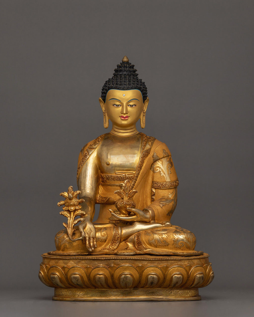 24K Gold Gilded Medicine Buddha Healing Energy for Meditation Decor | Medicine Buddha for Sacred Decor
