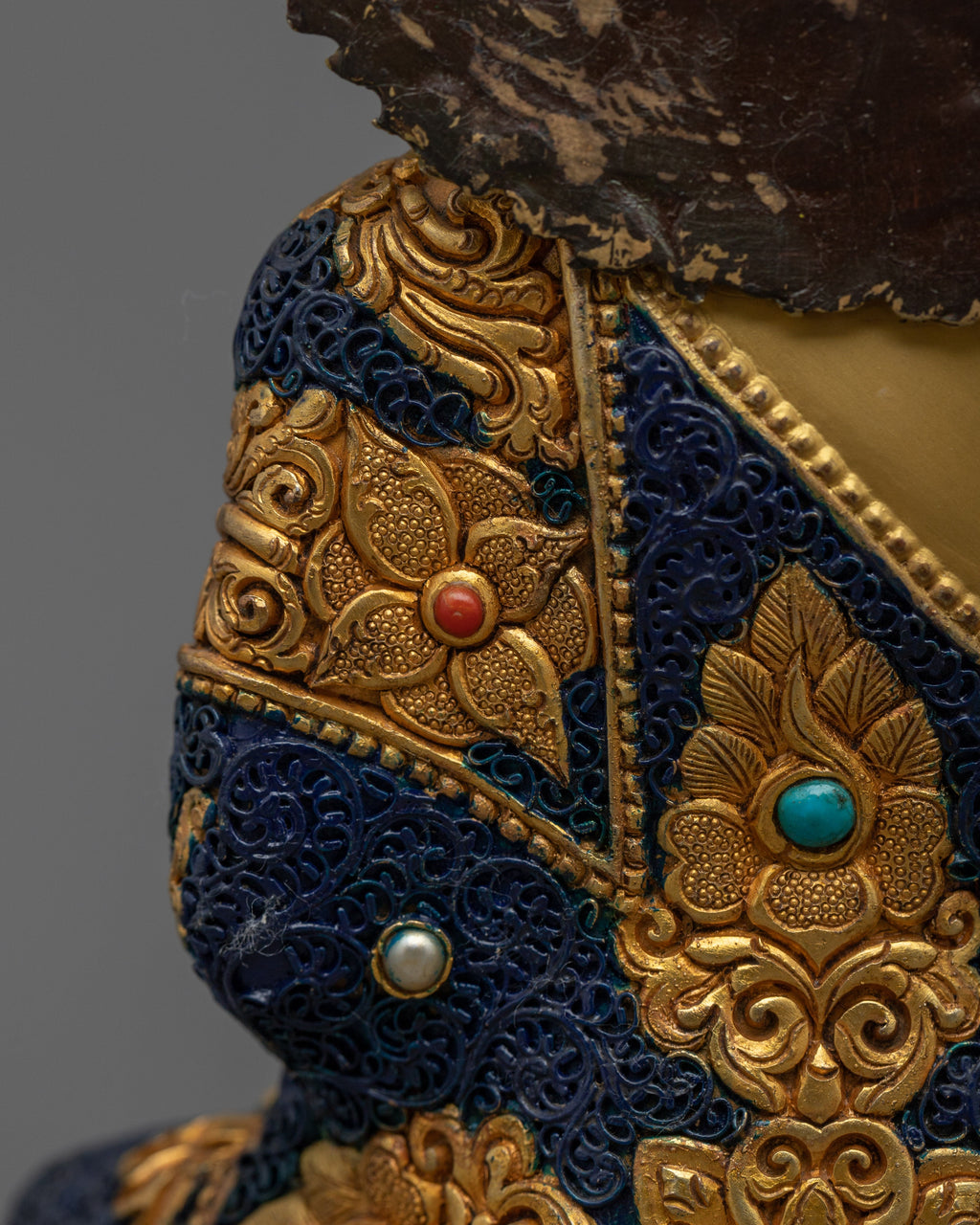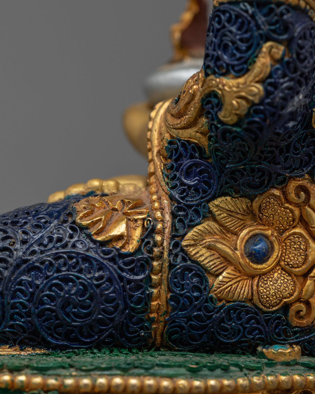 The Medicine Buddha, or Bhaisajyaguru, represents the historical Buddha Shakyamuni's healing element. He is revered as the great healer and is frequently asked to heal bodily and mental afflictions, as well as to provide the light of wellness and bliss to those in need.