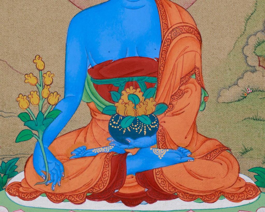 Meditating Medicine Buddha Thangka | Bhaisajyaguru Artwork | Karma Gadri Artistry