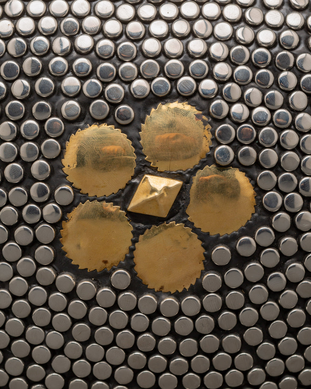 Elevate your accessory collection with this stunning Metal Side Bag with Brass, which combines vintage elegance with present ethnic artistry. This handcrafted work, measuring 20cm wide and 13.5cm high, has an elaborate pattern of raised silver-toned metal beads complemented with brilliant brass pieces organized in floral and abstract designs. It's the ideal handbag or side bag for festivals, cultural activities, and evening attire.