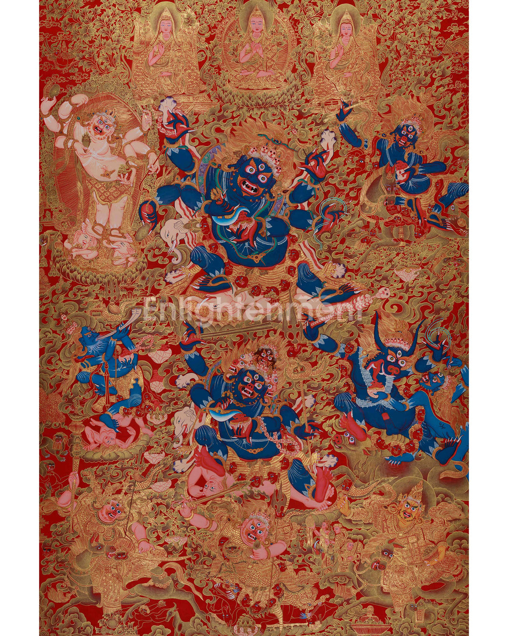 The Six-Armed Mighty Mahakala Protector Artwork | Guardian of Spiritual Enlightenment with Pure Gold Embellishments