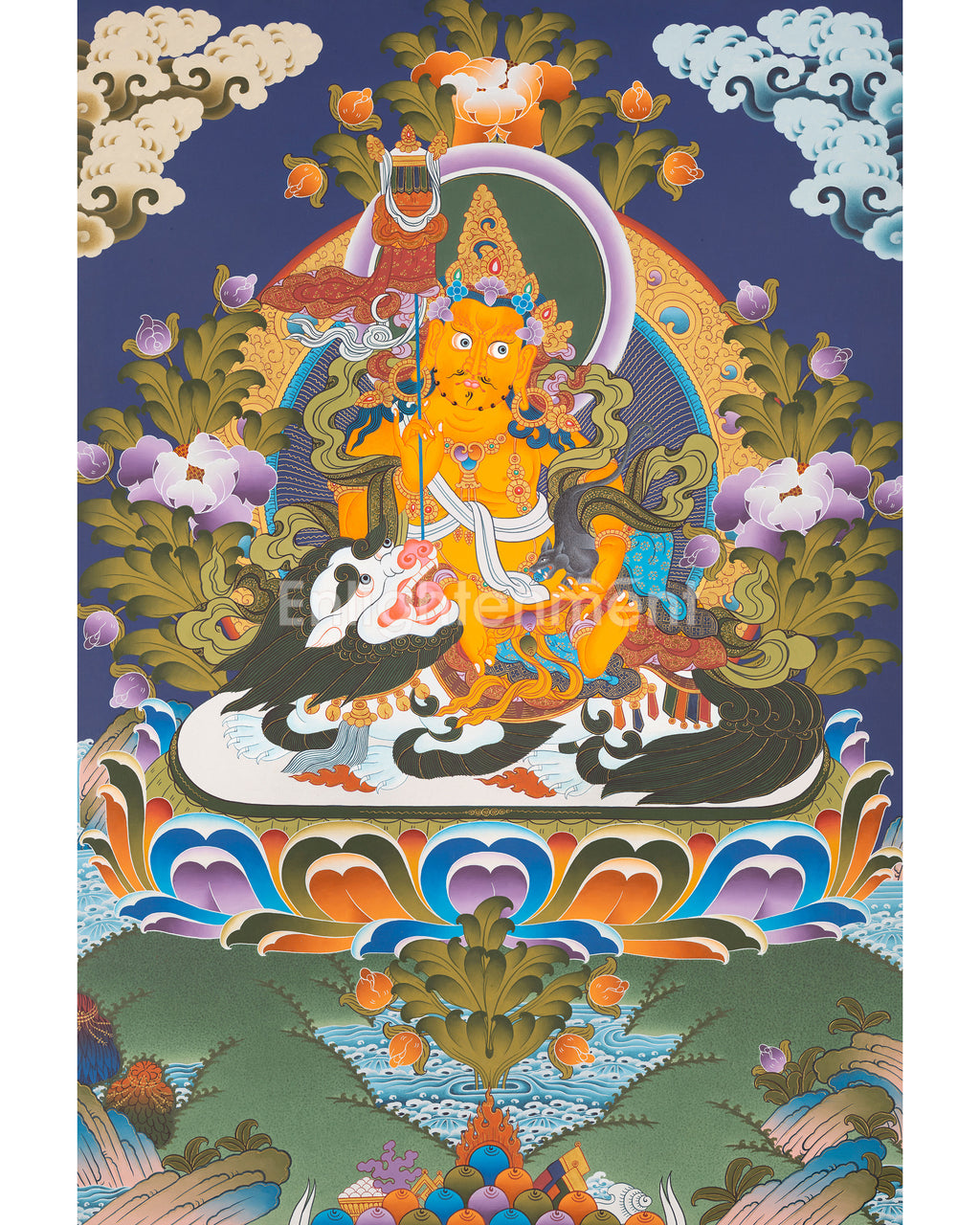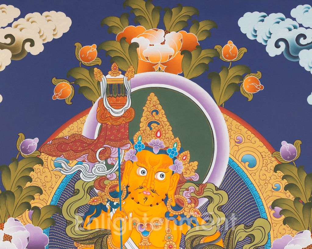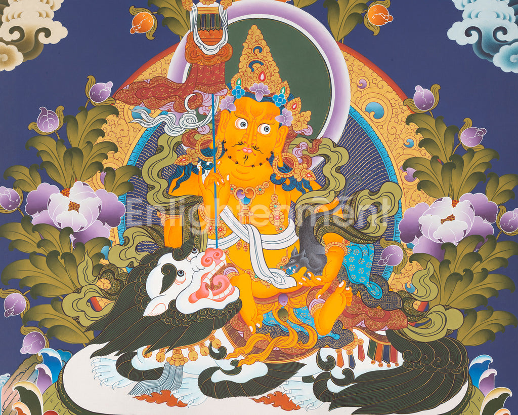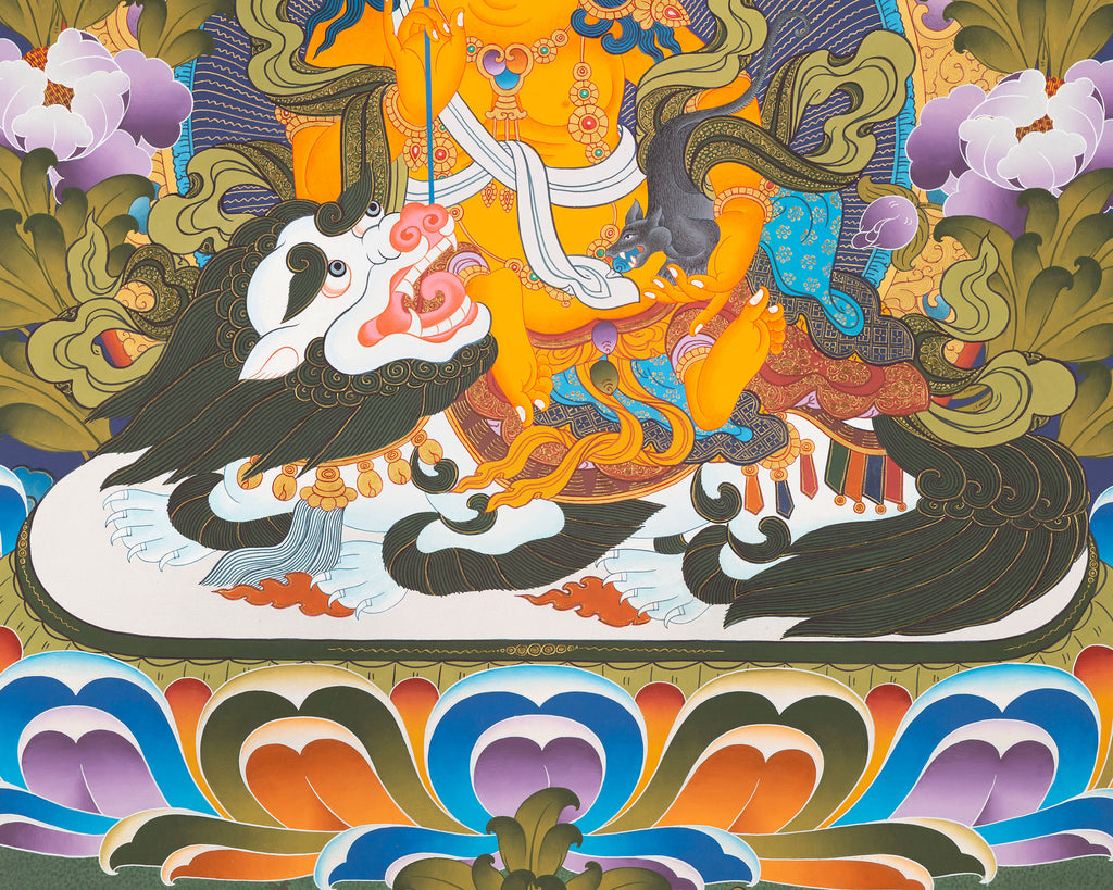 By invoking Namtose through prayers, mantras, and meditation, you can receive blessings of material and spiritual wealth. Namtose is also associated with generosity and the accumulation of merit, emphasizing the importance of using wealth for virtuous purposes and benefiting others. Displaying a Namtose Thangka in your space adds a powerful focus for meditation and devotion, as well as an exquisite decoration that brings protection, prosperity, and auspiciousness.
