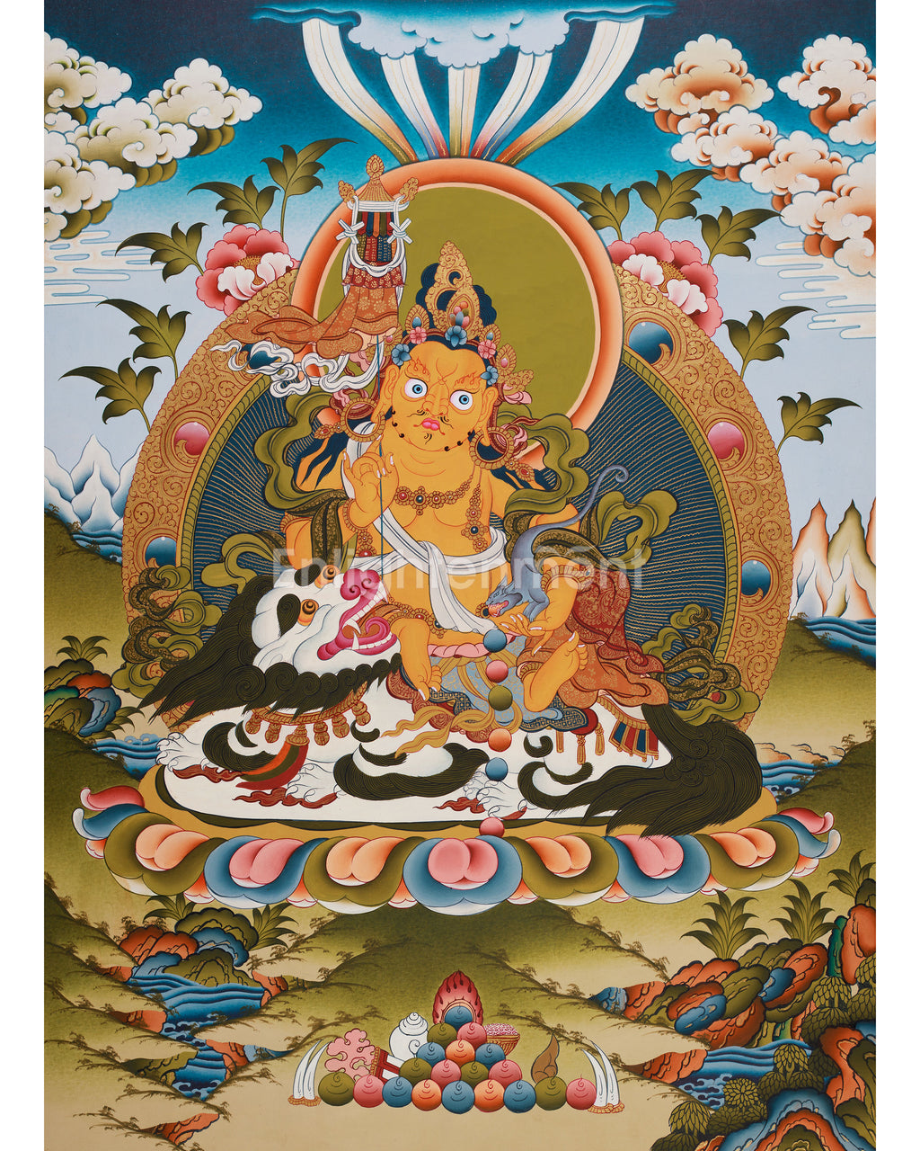 Namtoshe (Vaisravana) Hand-Painted Thangka: