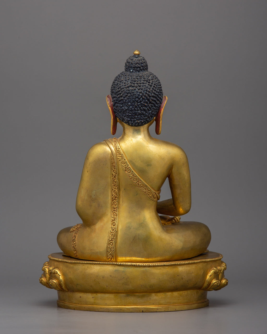 This Nepalese Buddhist Statue of Amitabha Buddha, known as the "Buddha of Infinite Light," is a central figure in Mahayana Buddhism, symbolizing boundless compassion and wisdom. This statue exemplifies the exceptional craftsmanship of skilled Nepali artisans from Patan, Nepal. Handcrafted with hard work, This Statue is fully made with 24K gold gilded, and we can see there is a beautiful acrylic painting on the face. This Statue measures 13.4 inches (34 cm) in height and 9.8 inches (25 cm) at the base, and weighing 6.21kg. Crafted by expert Nepalese artisans, this sacred item embodies the rich traditions of Himalayan Buddhism, making it an important addition to altars, meditation areas, or sacred collections.