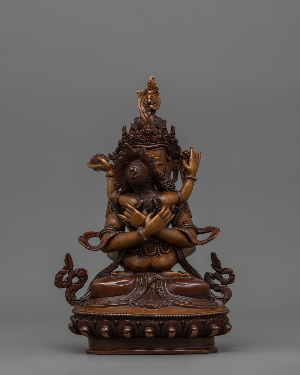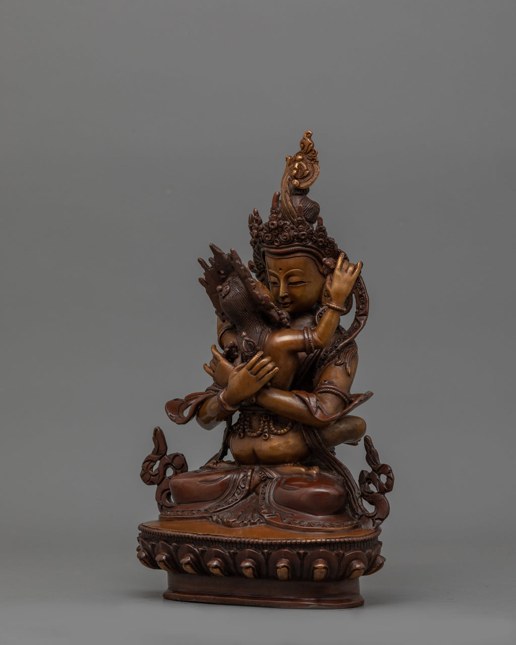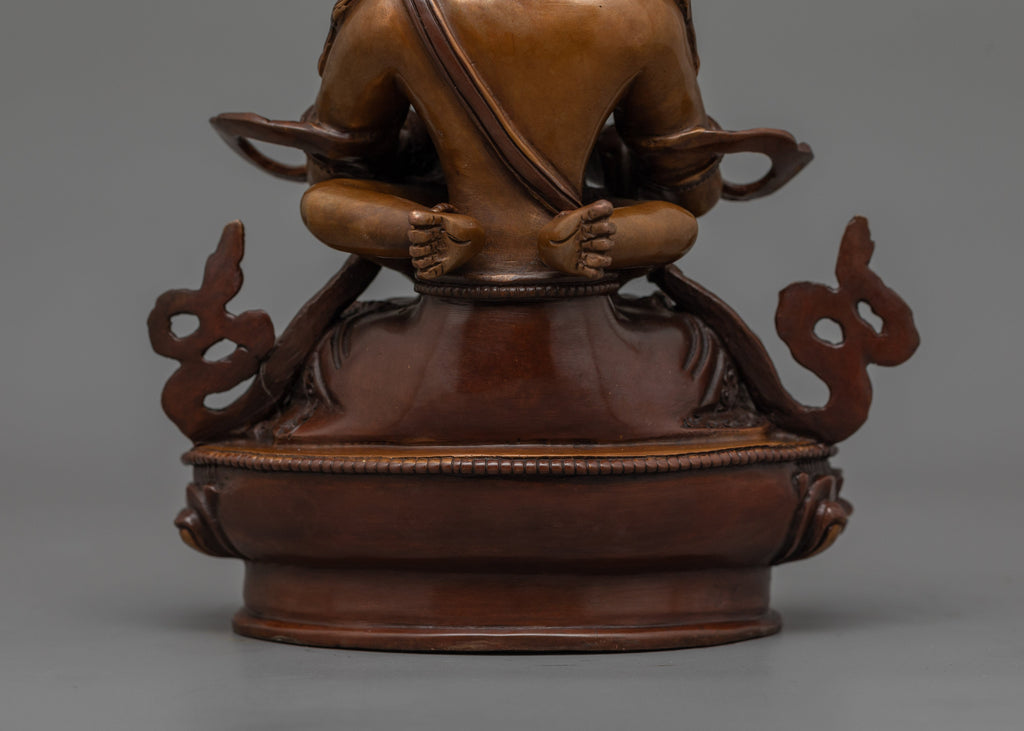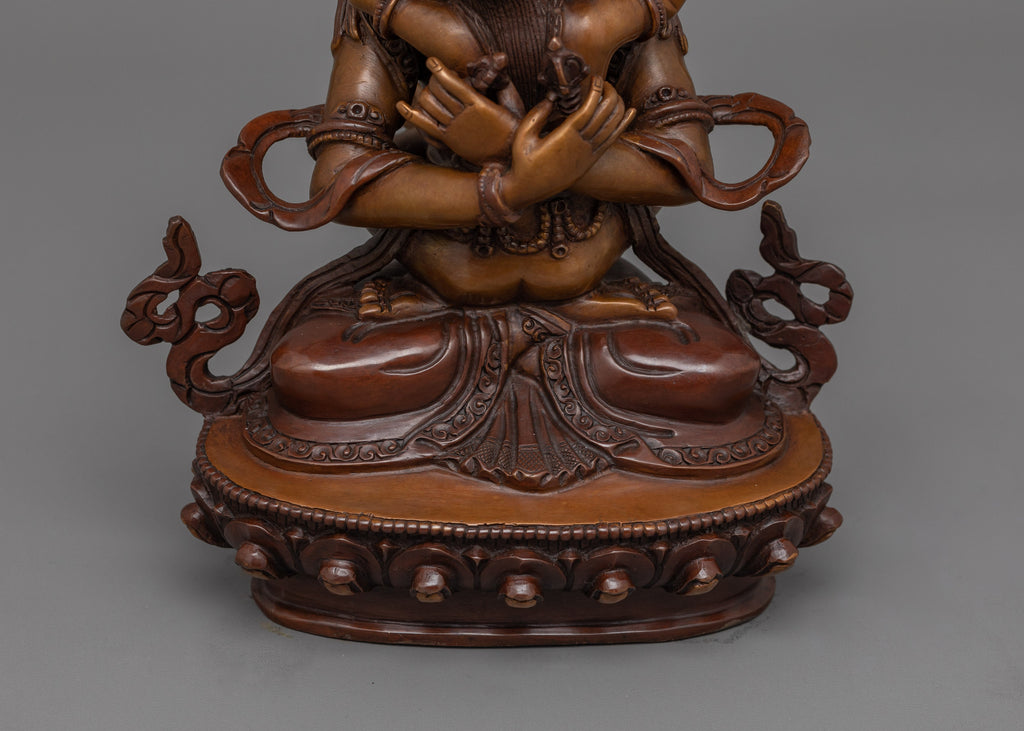 The Holder of the Thunderbolt, Vajradhara, represents the ultimate Buddha nature and embodies the essence of Tantric Buddhism. Vajradhara, seated in intense meditation, represents the unchanging, indestructible attributes of wisdom and compassion. This statue connects believers to the primal essence of Buddhism, making it an important element for thought and meditation.