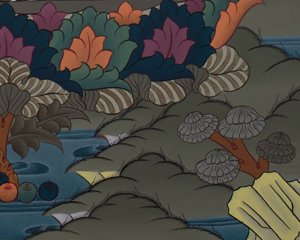 THIS THANGKA IS HAND-PAINTED IN THE TRADITIONAL STYLE BY A NEPALI ARTIST, AND THE QUALITY IS HIGH