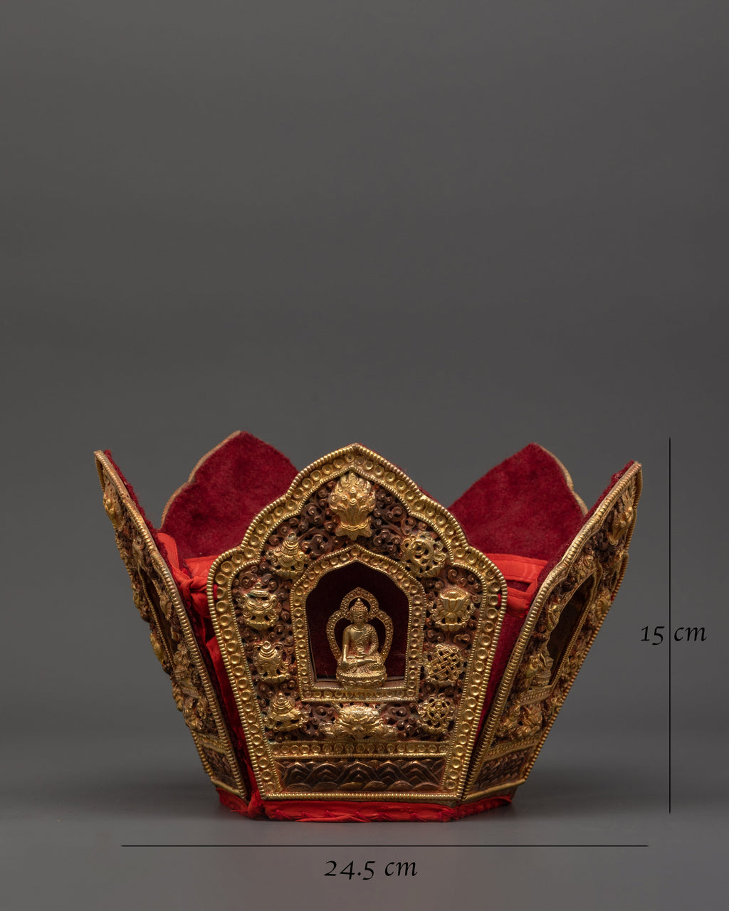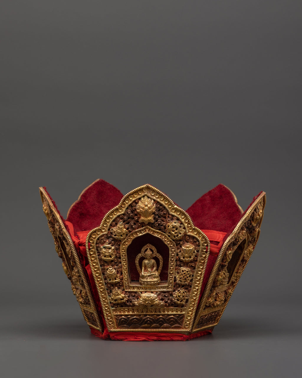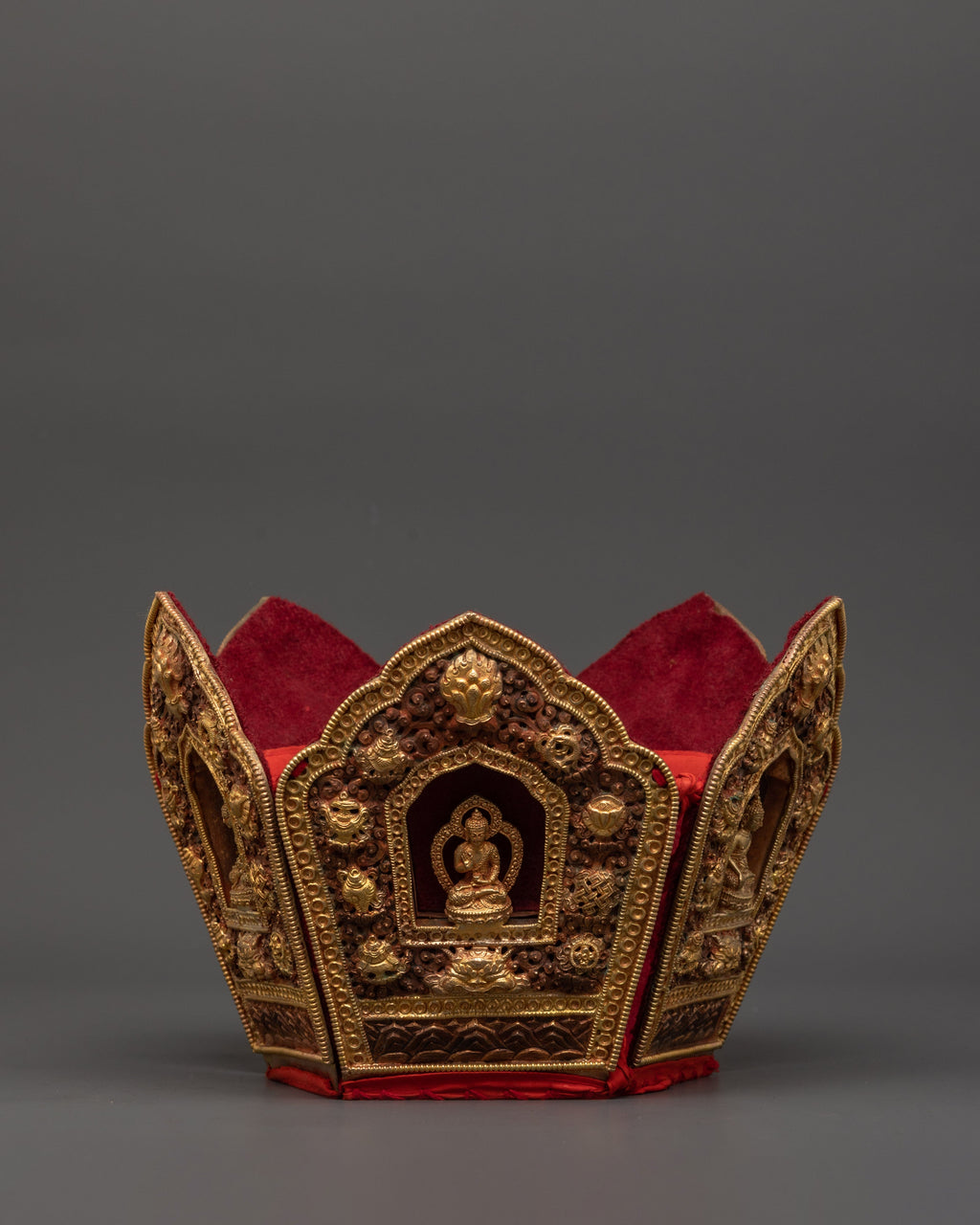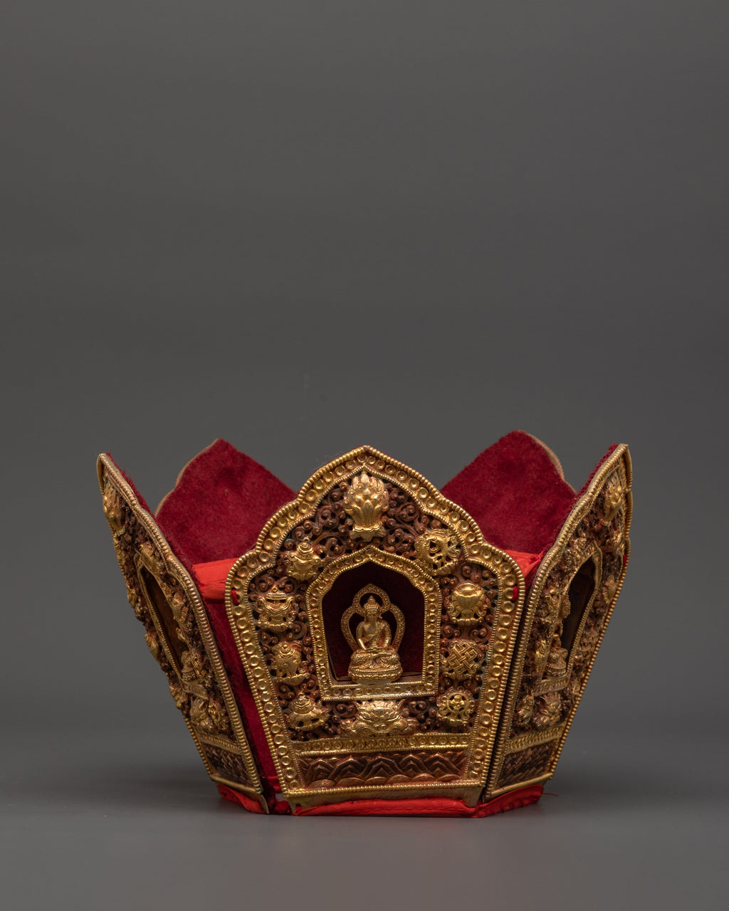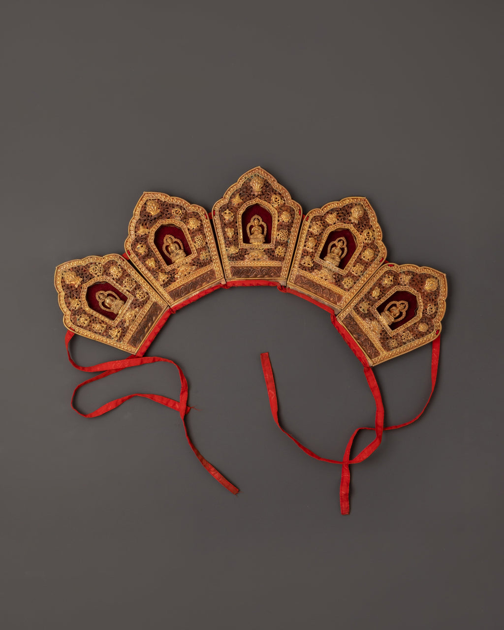 Oxidized Copper Tibetan Crown with 5 Dhyani Buddhas | Electro Gold Plated Headdress | Sacred Buddhist Art
