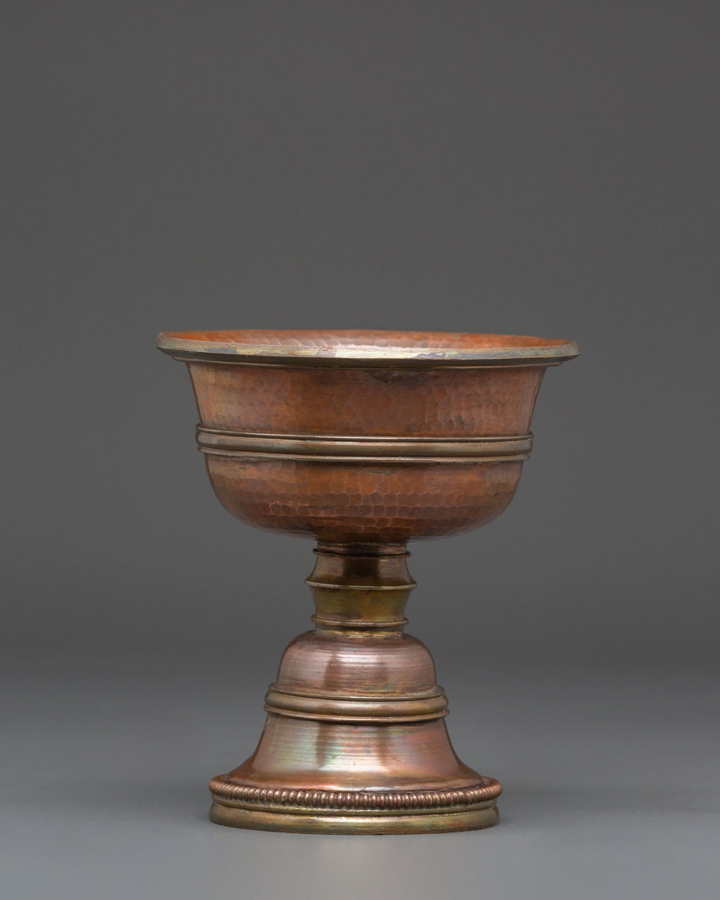 In Tibetan Buddhism, the butter lamp symbolizes the illumination of wisdom that dispels the darkness of ignorance. Placing this oxidized copper lamp on your altar or meditation space represents an offering of light to the Buddhas and Bodhisattvas. Beyond its spiritual role, the warm glow from this lamp creates a serene and contemplative atmosphere, supporting mindfulness and inner peace. Each lamp is carefully shaped by artisans, carrying both cultural heritage and spiritual symbolism.