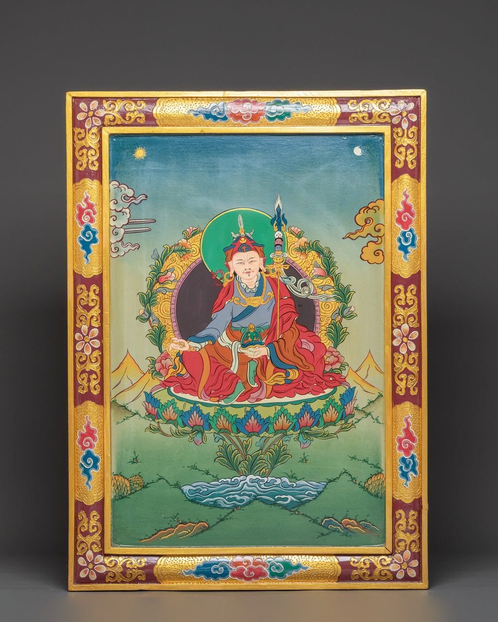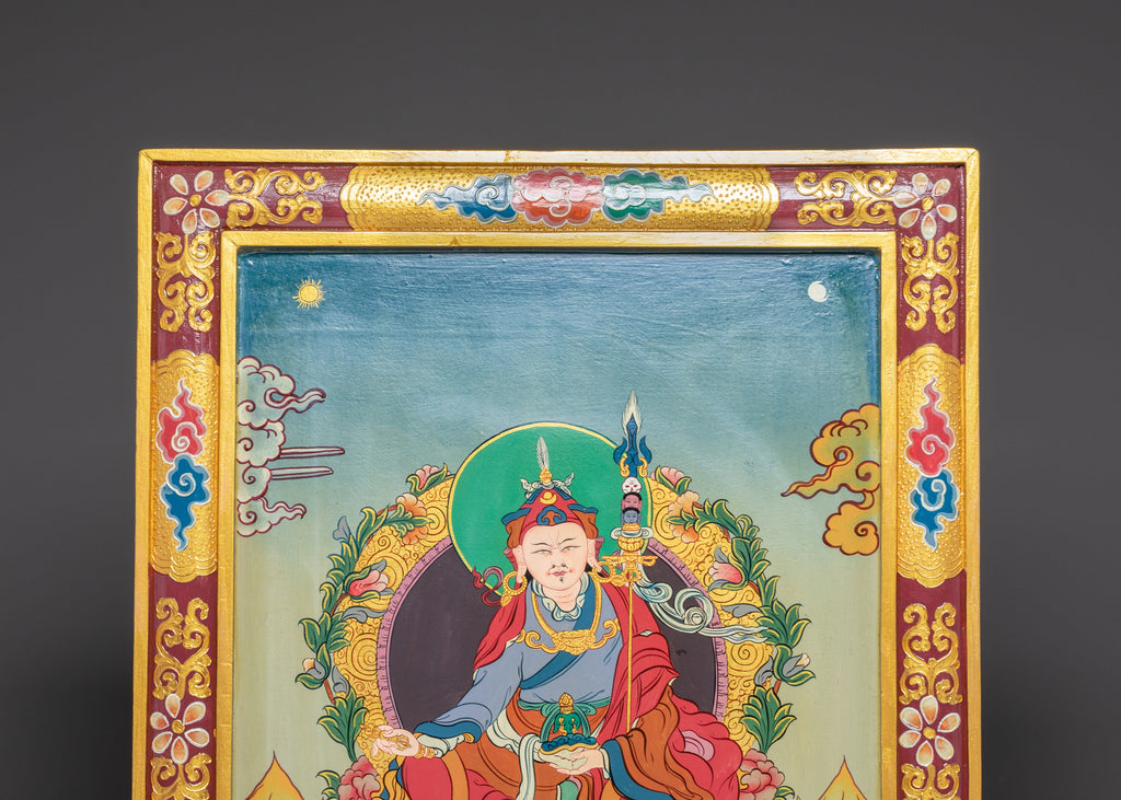 Tibetan Padmasambhava Wall Hanging | Hand-Painted Wooden Thangka with Acrylic Colors