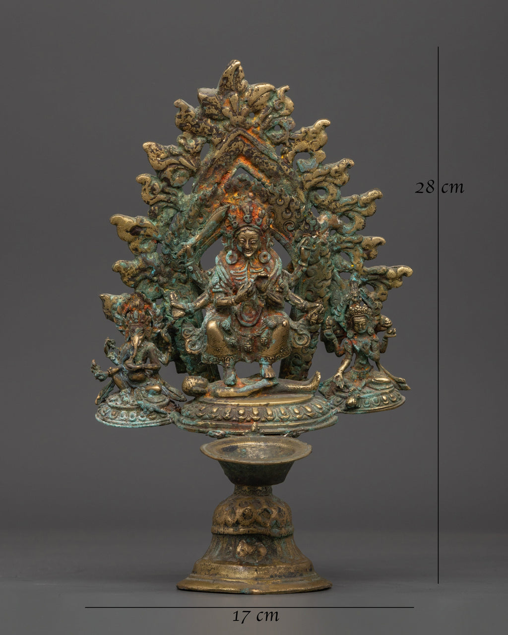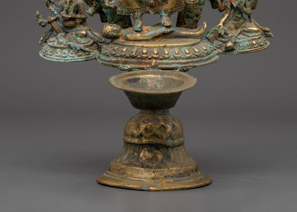 Handcrafted Panas Statue Oil Lamp with Antique Finish