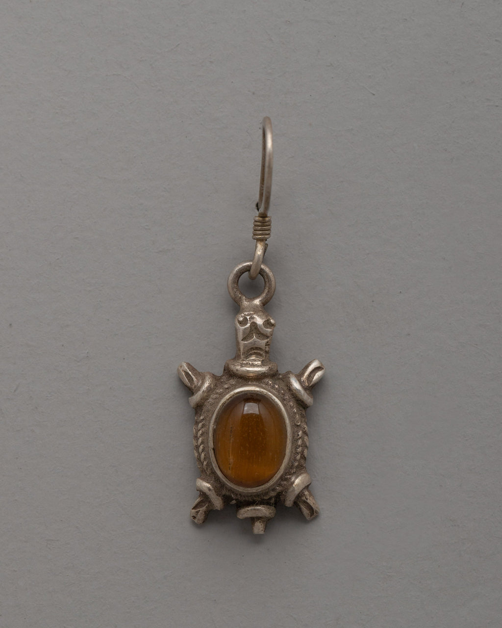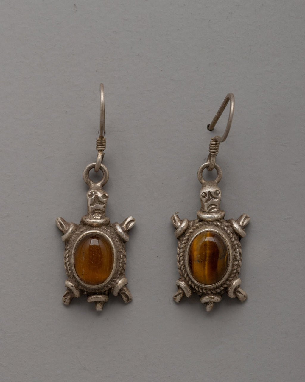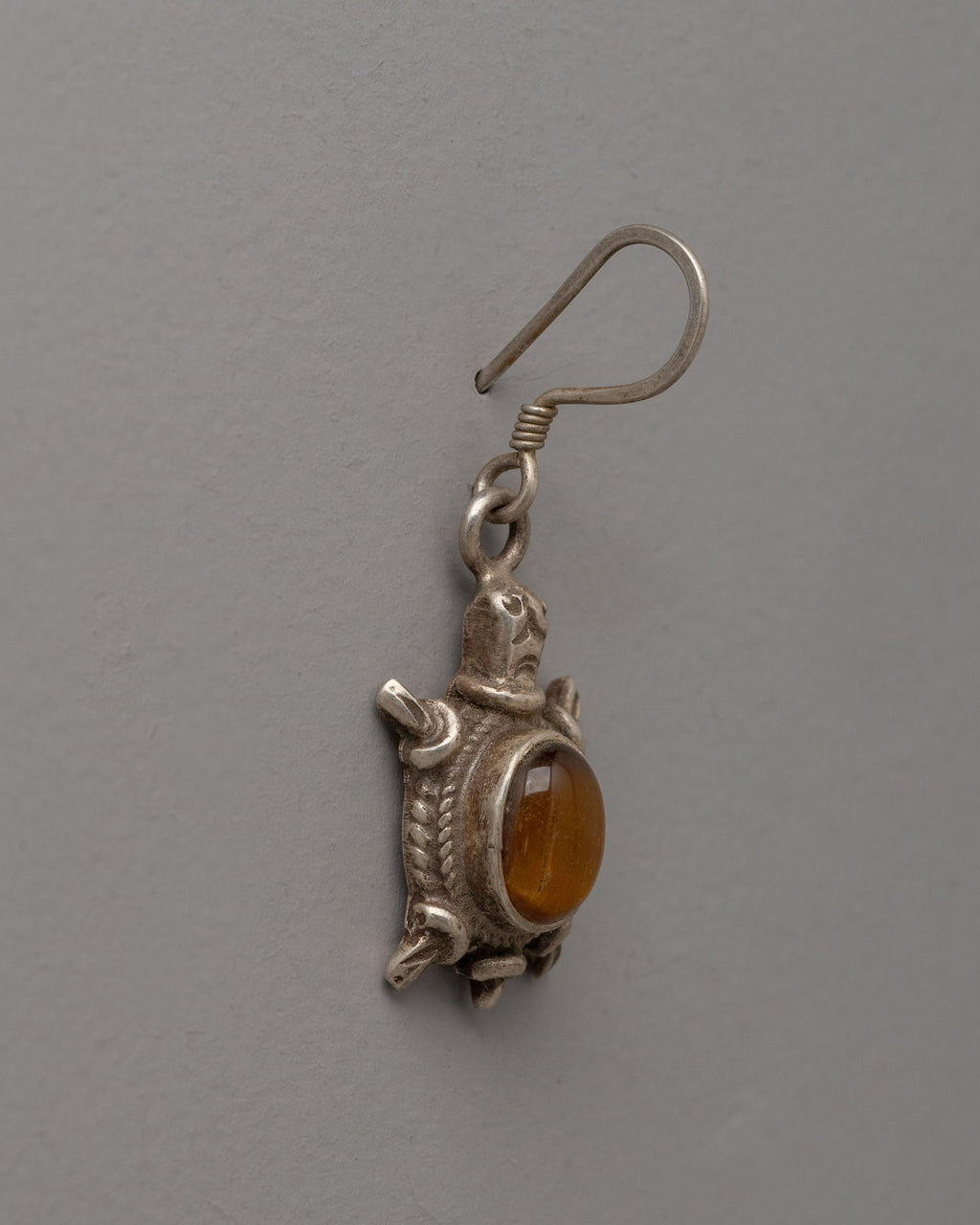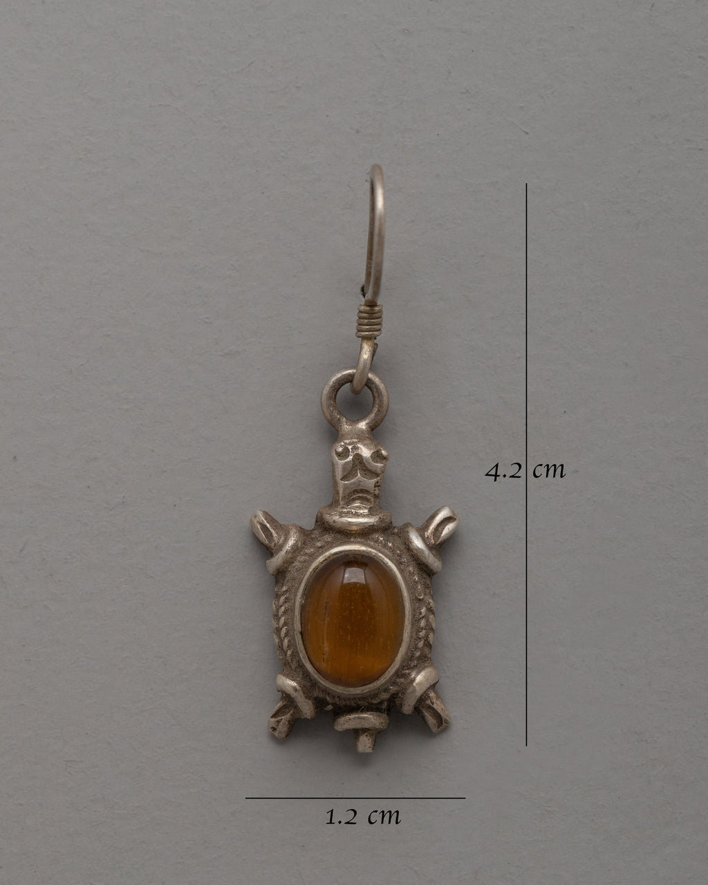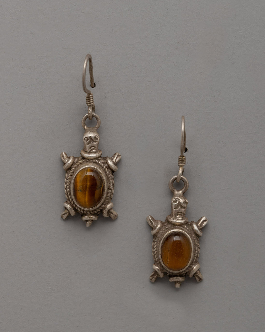 Enhance your look with these set of handcrafted tortoise earrings, which are composed of 92.5% pure silver and copper for a classic and long-lasting finish. An original Panna, a stone symbolizing knowledge, wealth, and personal development, is set into each earring. The elaborate tortoise design, which combines ethnic diversity with a contemporary look, represents durability and protection.