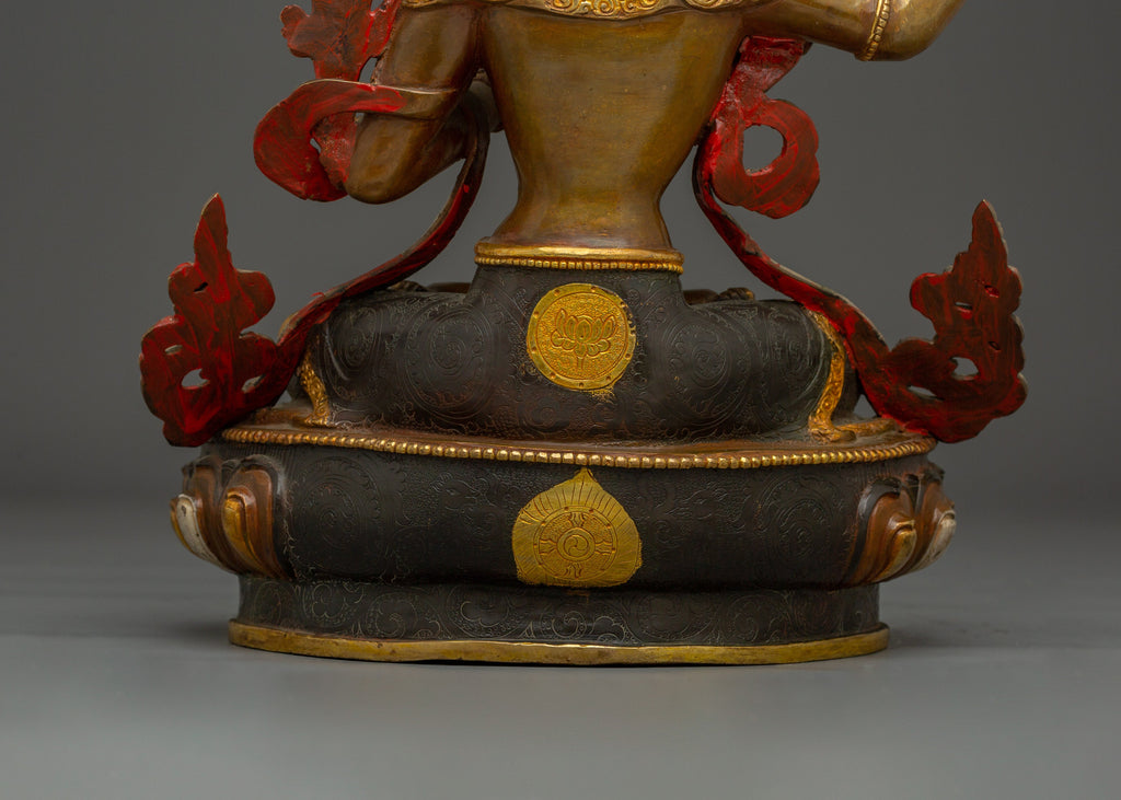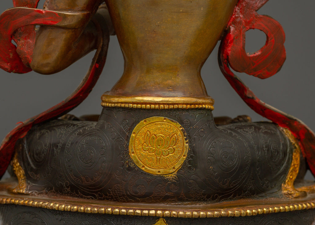 In Buddhist traditions, Manjushri, the Bodhisattva of Wisdom, is revered for his ability to cut through delusion and bring clarity. When paired with his consort, this portrayal highlights the union of transcendent wisdom (Manjushri) and profound comprehension (Consort). They work together to guide the seeker in a deeper understanding of reality, emphasizing the balance between knowledge and sensitivity. This statue serves as a beacon for anyone seeking a greater sense of themselves and the universe.
