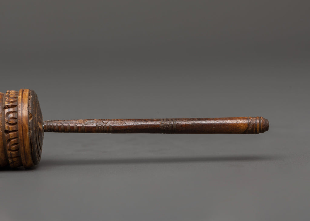 This traditional prayer wheel measures 17 cm in height and 3.5 cm in width, having been meticulously crafted from ethically sourced buffalo bone. Its small size and lightweight design (approximately 0.066 kg) make it ideal for handheld usage during daily practice or as a unique altar addition. The carvings and spinning mechanism represent the rich spiritual tradition of Himalayan artists. They serve as a timeless tool for developing your mantra meditation and aligning your aspirations with compassion and wisdom.