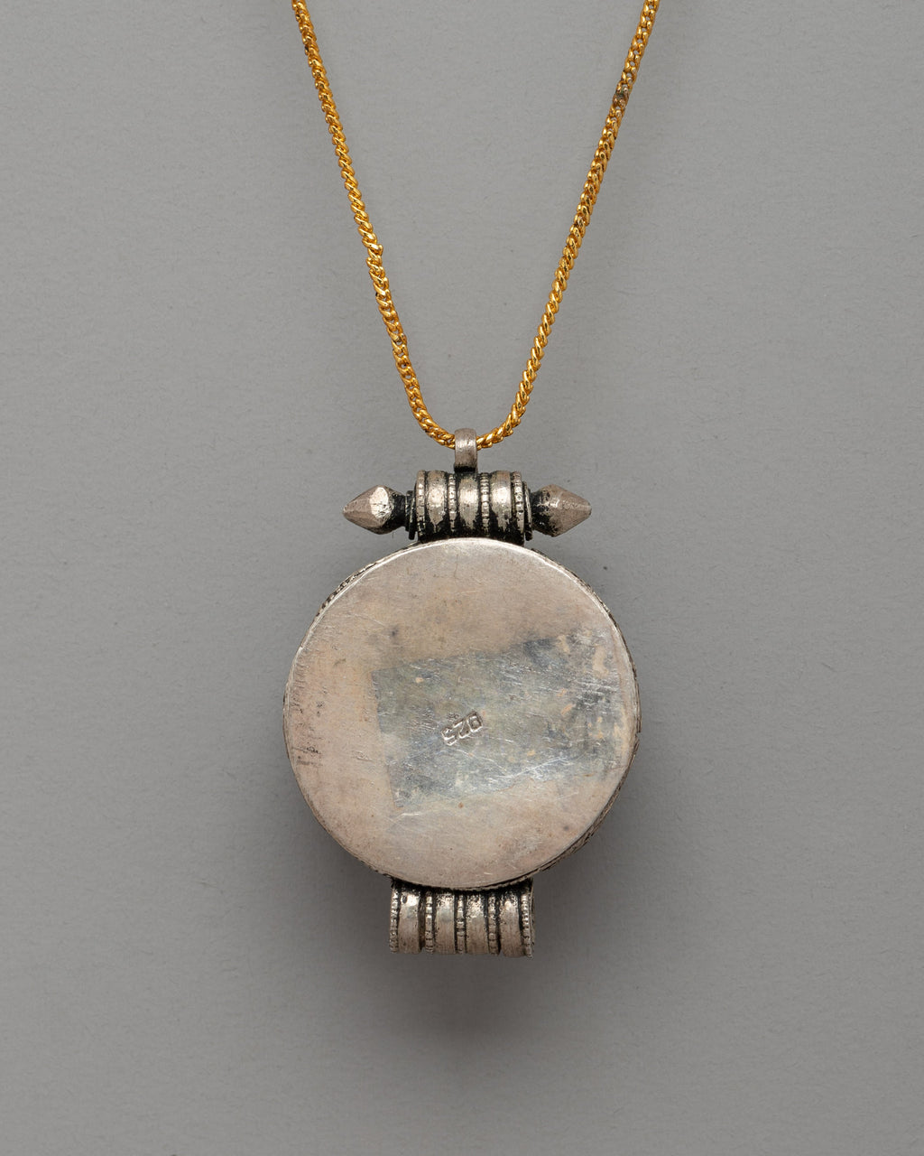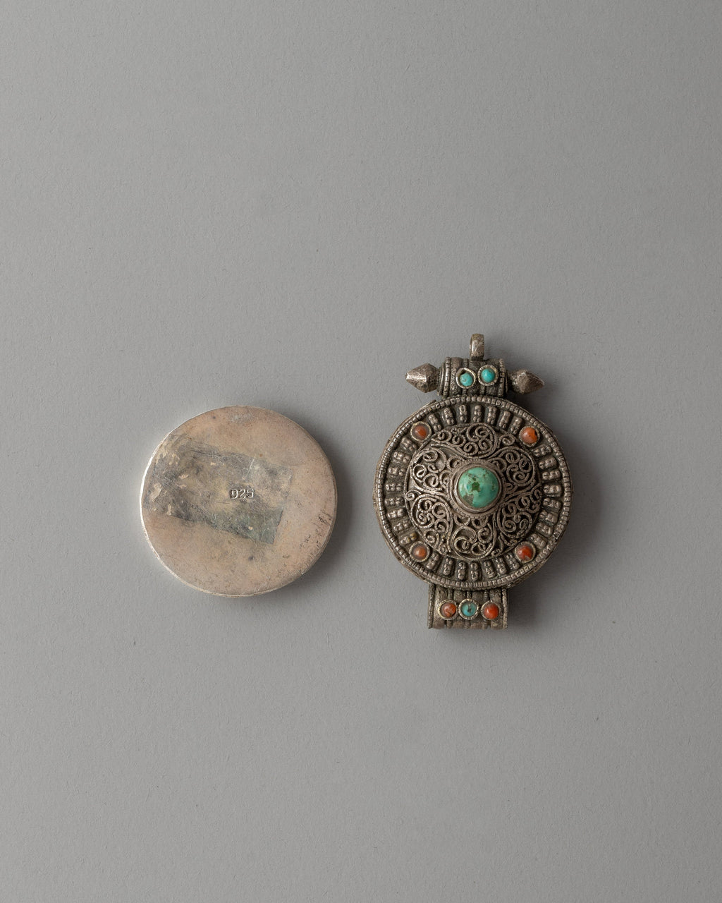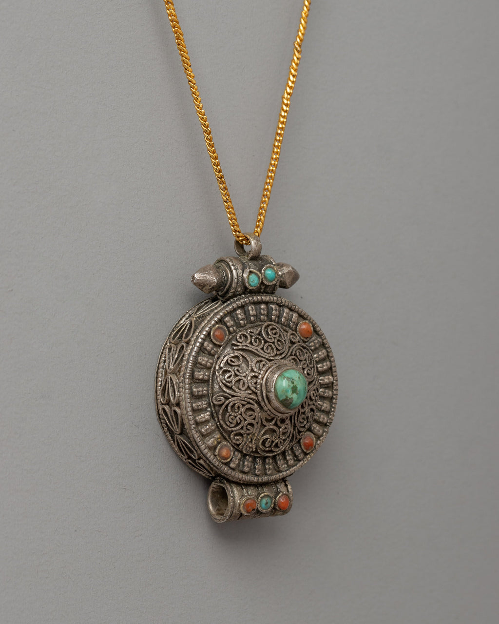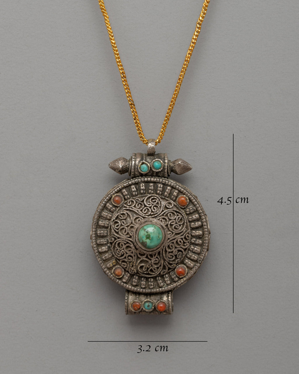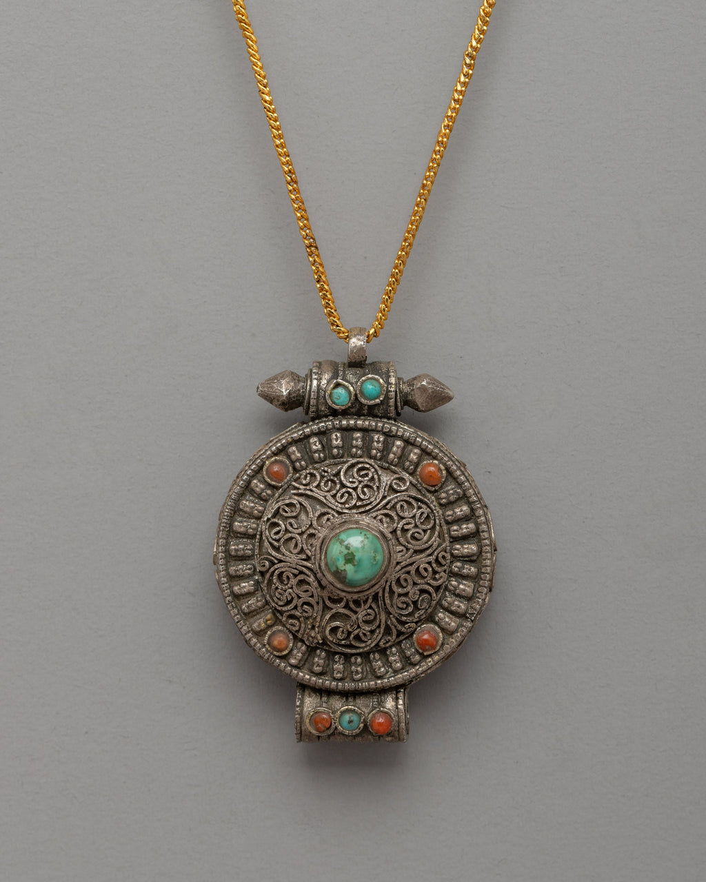 Silver Ghau Locket with Turquoise and Coral for Spiritual Devotion
