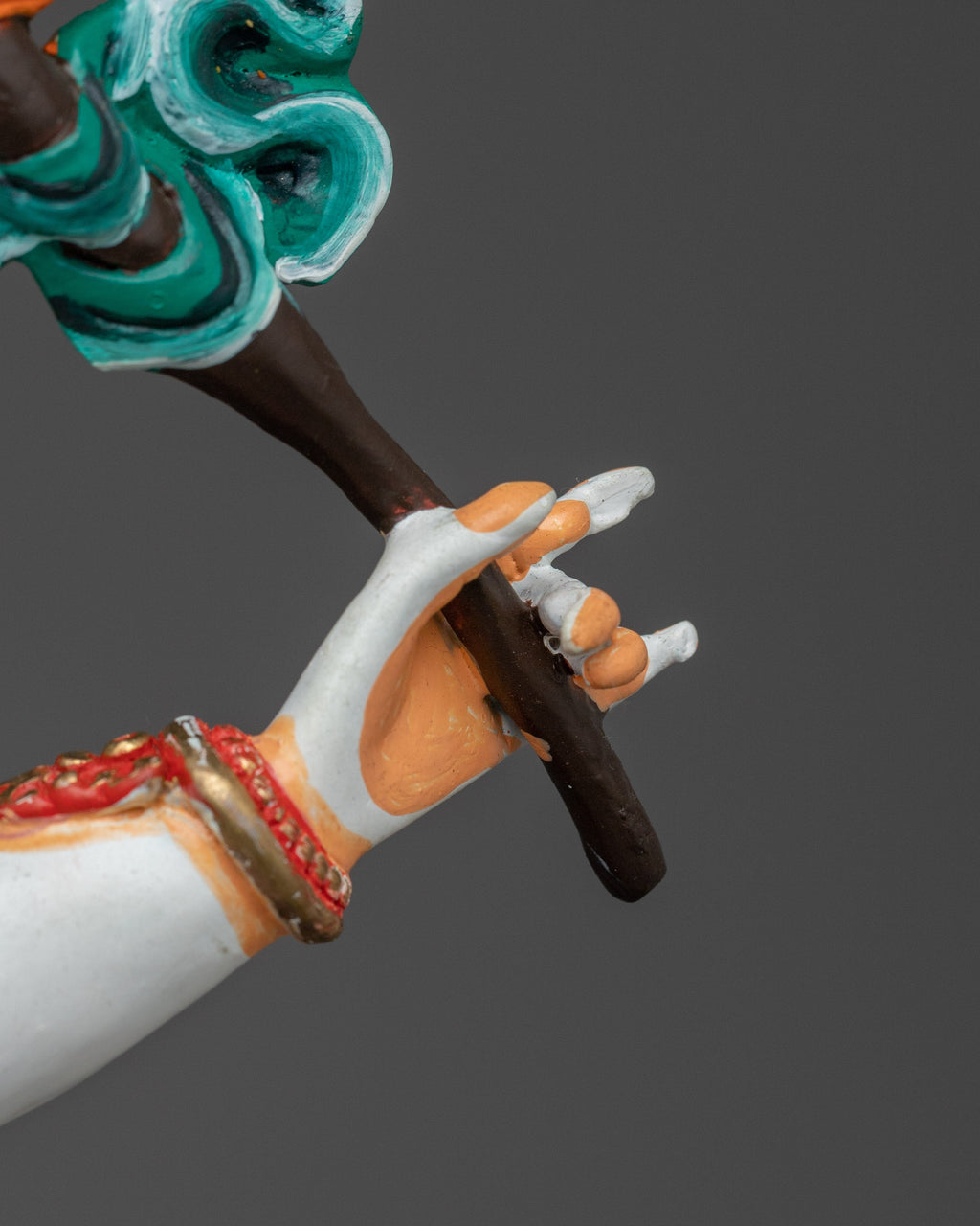 White Mahakala is depicted in his wrathful form, with three eyes symbolizing his ability to see the past, present, and future, and six arms holding various implements of protection and wealth. His intense expression reflects his role as a fierce protector and a compassionate guardian who removes obstacles and negativity. His robust stance embodies his authority as a defender of the Dharma and a provider of material and spiritual wealth.