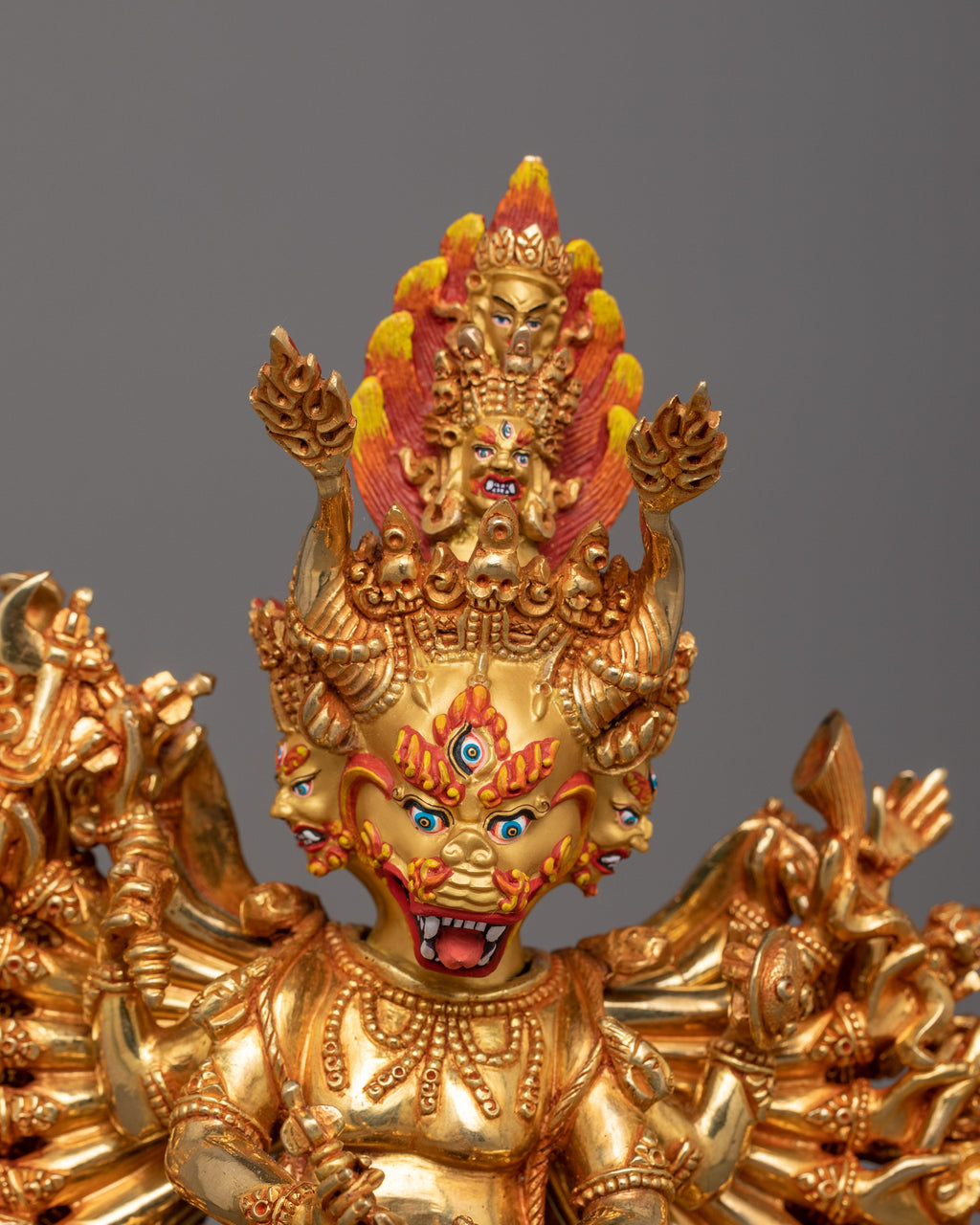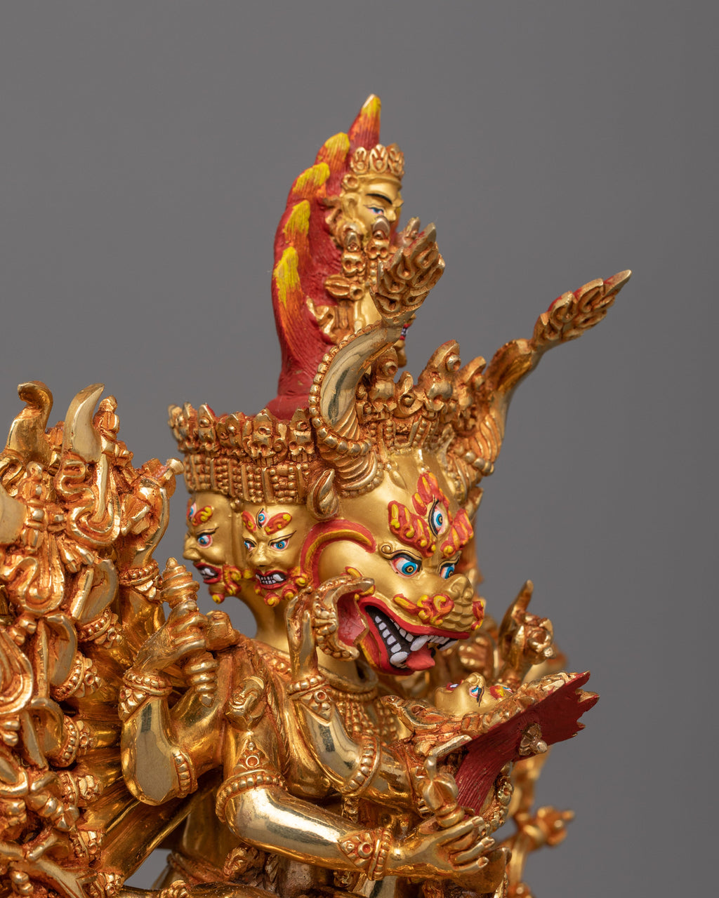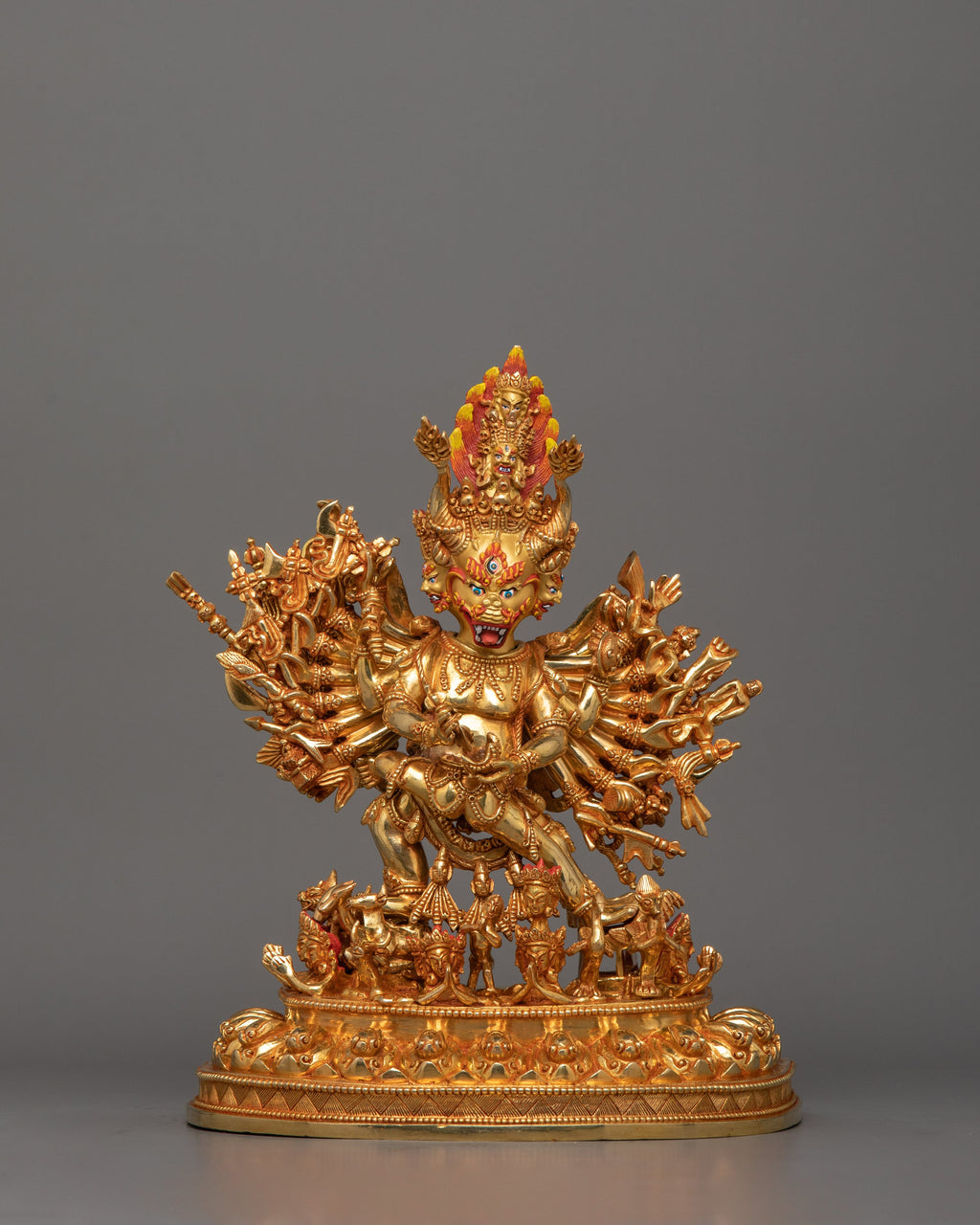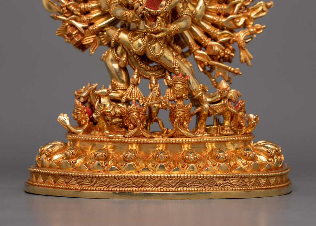 Traditional 24k Gold Gilded Protector Deity Yamantaka Statue for Sacred Decor