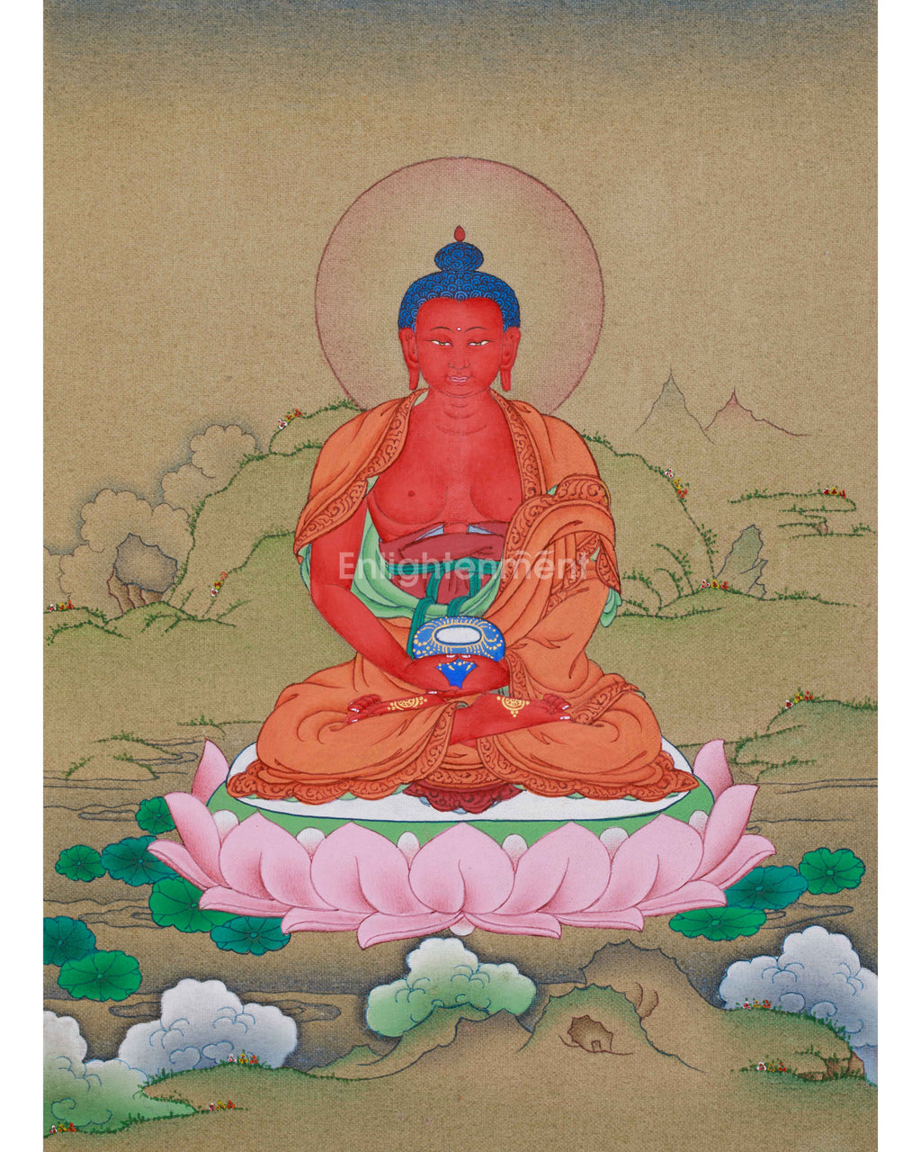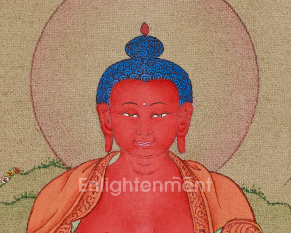 Handmade Red Amitabha Buddha Painting | Enlightenment and Peace Artwork
