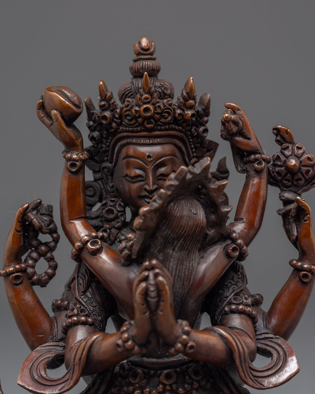 Red Chenrezig with consort Oxidized Handcrafted Statue