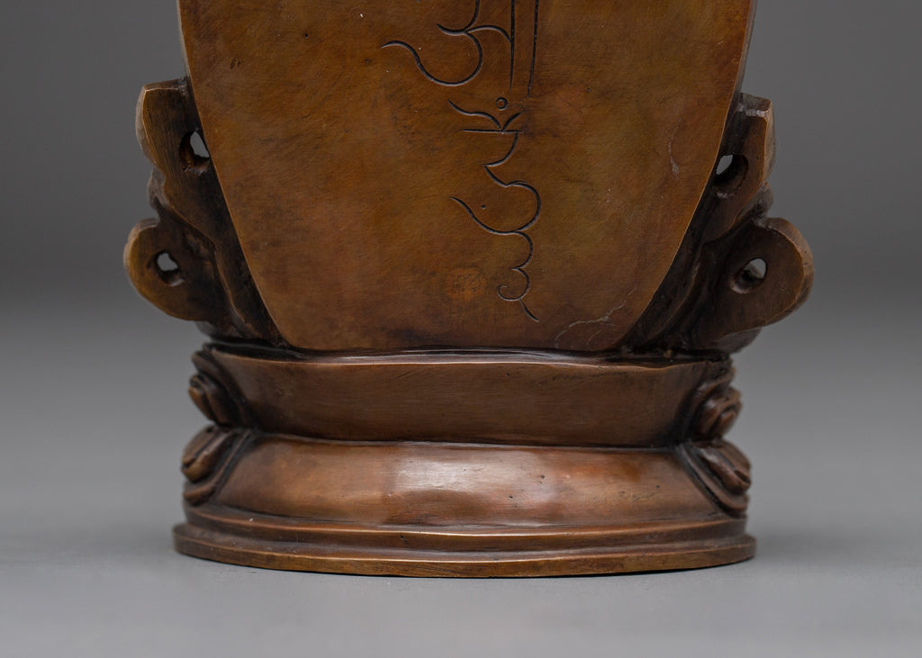 This Revered Buddhist Wealth Deity Dzambhala Statue measures 4.7”/12cm in height and 3.7”/9.5cm at the base, weighing 0.66 kg. Crafted from oxidized copper, this statue captures the powerful presence of Dzambhala, the deity of wealth and prosperity in Tibetan Buddhism. Known for bestowing abundance and removing financial obstacles, Dzambhala is a popular figure for those seeking material and spiritual riches. Its compact size makes it ideal for personal altars, meditation spaces, or as a meaningful gift to invite prosperity and good fortune.