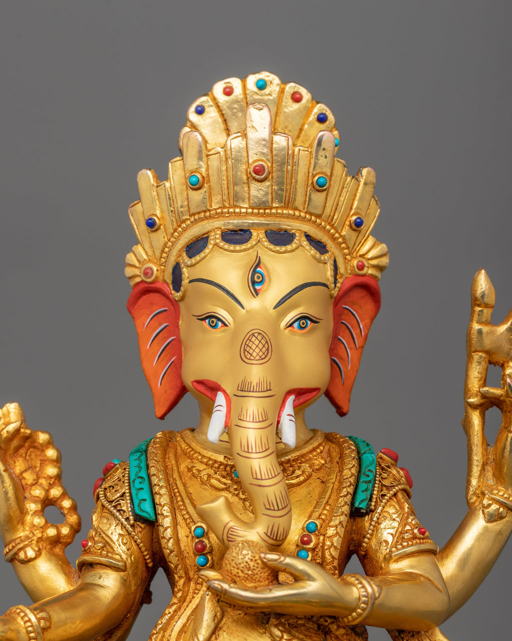 The Hindu deity Ganesha is represented by the highly respected Four-Armed Ganesha, also called Chaturbhuja Ganesha, who stands for intellect, wisdom, and the elimination of obstacles. His four arms are filled with several objects: a bowl of sweets symbolizing the sweetness of spiritual satisfaction; a broken tusk, or modaka, marking the rewards of wisdom; a noose, to capture and control challenges; and a goad, to propel forward and remove impediments. Every object highlights a different facet of his heavenly essence. Many people draw and worship this version of Ganesha in hopes of receiving advice and benefits. He is the embodiment of the many functions of an opportunist, a leader, and a giver of blessings.